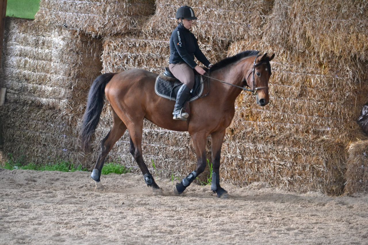 | Dire merci | Les mains basses ne rendent pas dure. Ce qui rend dur c est le poignet cassé qui ne se soutient pas. Et la main qui tombe sur le genou ou dans la braguette. J'ai pas l'impression que ta main soit dure mais maladroite encore , ce qui n'est pas pareil. Après on est tous maladroits Mais parce qu'on ese tous nuls après j'aime bien parve que tu te poses les bonnes questions.Mais au vu de ton cheval sans doute elle dit ça car j'imagine que tu arrivés à l'avoir bien dans des cadences posées. Et que vu le cheval un me fois qu'il est posé dans ta main tu pourrai demander plus d'activité car oui, au vu de son physique il a de la marge pour pousser. Donc il doit être bien mais quand il est comme ça cool et dans ses rênes c'est à peine le début du boulot. En gris c'est à partir de ça qu'il faut poser la suite du travail. C'ést comme si chez nous on disait " aujourd'hui j'étais bien j'ai regardé où j'allais, et j'étais bien assise " Et le reste ? Il faut se dire que ce n'est jamais assez... Tout en félicitant ce qui est bien, et garder en tête qu'il faut toujours plus. Puis les jours où ça va bien faut profiter, c'esr qu'on a été bon |