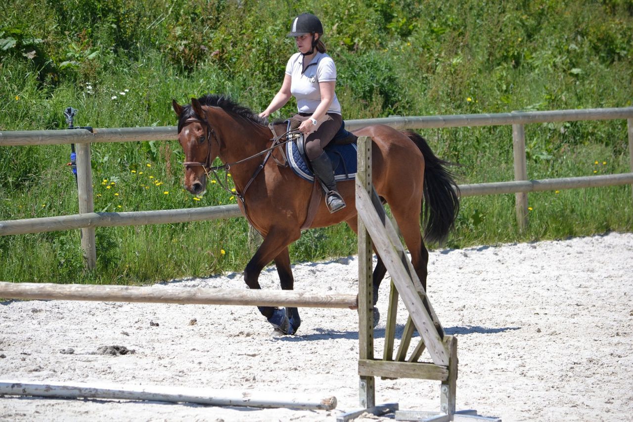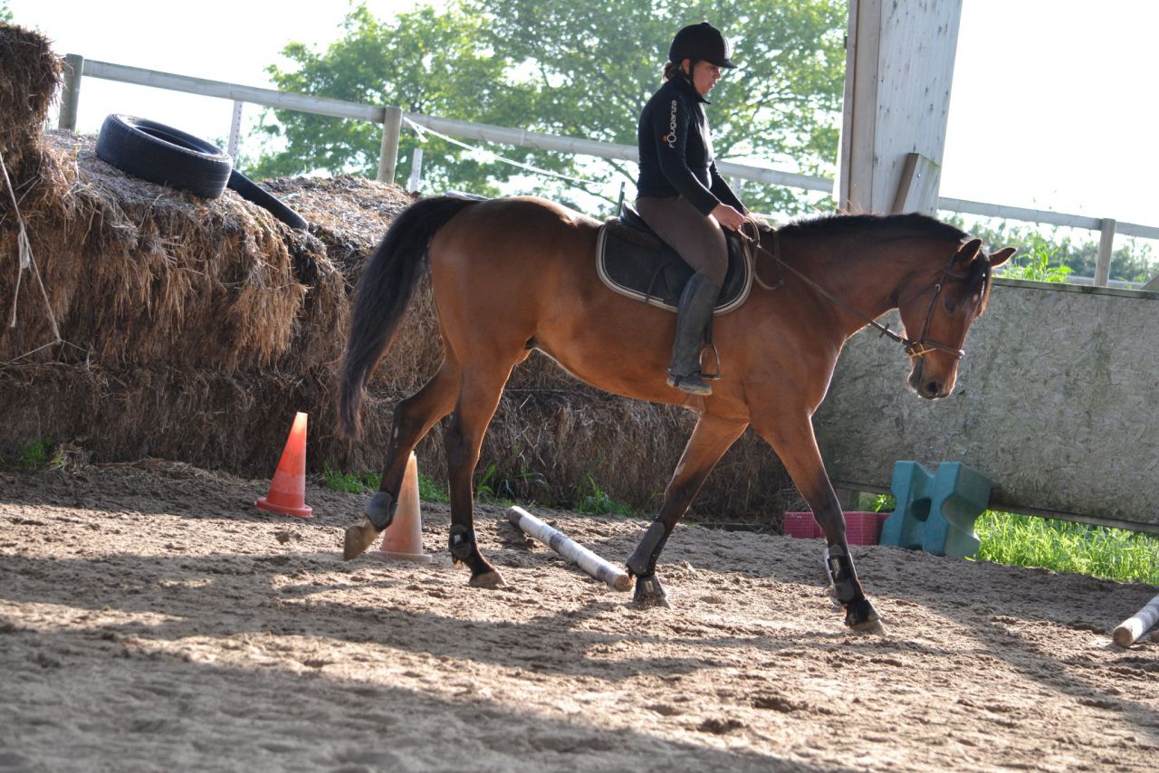 | Dire merci | Moi aussi j'aurai bien aimé. A voir avec elle, mais si elle le peut, ça serait bien qu'elle le fasse régulièrement. qu'il ne s'enclenche pas encore sur un parcours parce qu'il est assez inquiet et qu'il a peu d'expérience Oui Il faut le déclencher. Et je pense que dehors, rien de telle. Faut vraiment que le temps s'améliore là! On a reparlé concours. Mais d'après ce qu'elle a vu aujourd'hui, il ne sortira pas avant la rentrée prochaine. Pleins de trucs à bosser pendant l'été. Par contre le sortir pour le bosser ailleur, ça oui! |