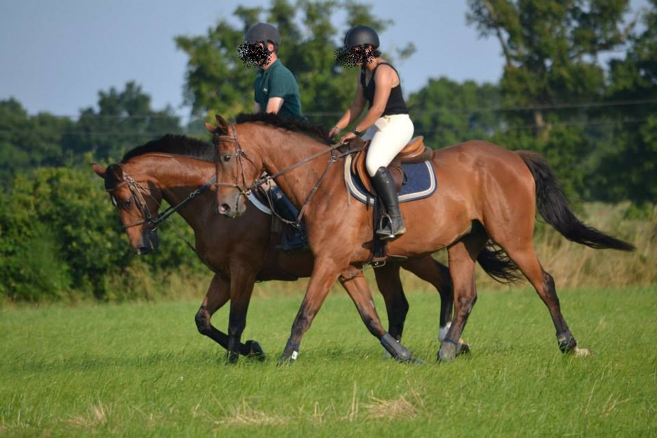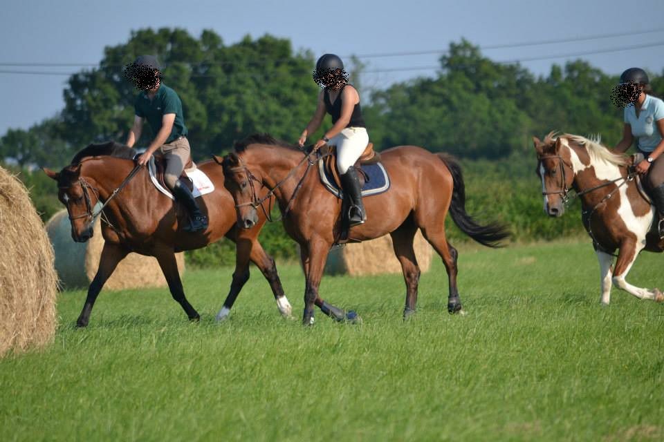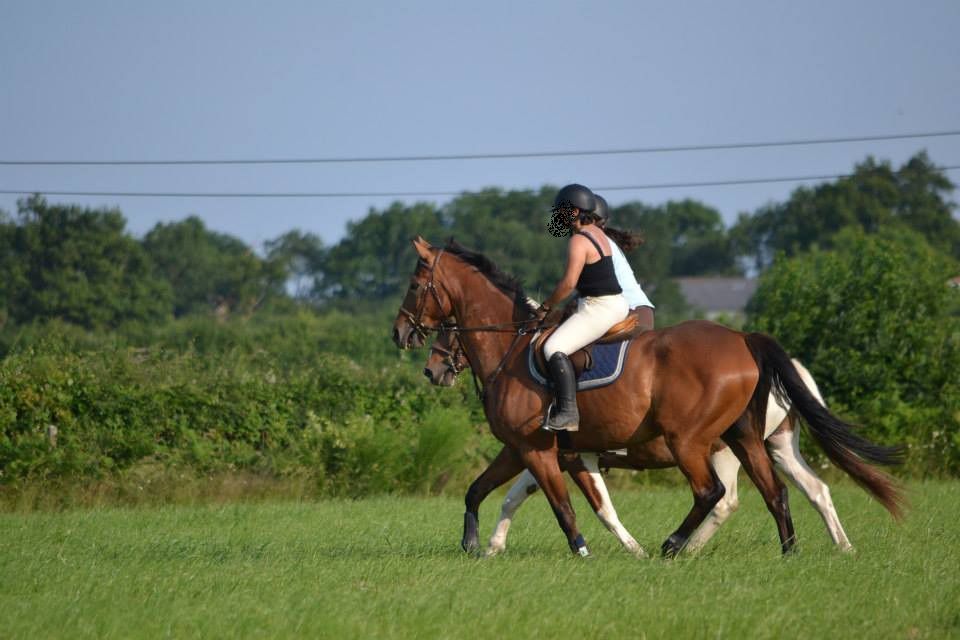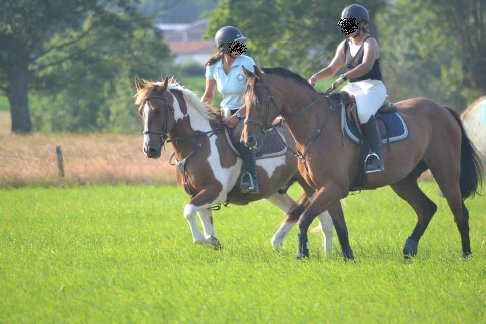 | Dire merci | Des nouvelles, ça va être rapide! Depuis mercredi, il n'a bossé que samedi. Il y avait trotting de prévu avec ma DP dimanche, mais elle a eu un soucis avec son chat. Et moi, impossible d'y aller. Donc samedi, après midi avec jument_Noire. Douche avant d'aller monter et direction la carrière où elle l'a détendu. Puis on est allé en pature, il faisait trop chaud et trop lourd pour travailler. La pature, c'était pour s'amuser. Après plusieurs tours de galopade pour jument_Noire, je monte à mon tour. Juste pour le plaisir, pas longtemps parce que Lasco avait bien chaud. Quelques tours de galop, du trot pour récupérer et retour aux écuries! ![]() |