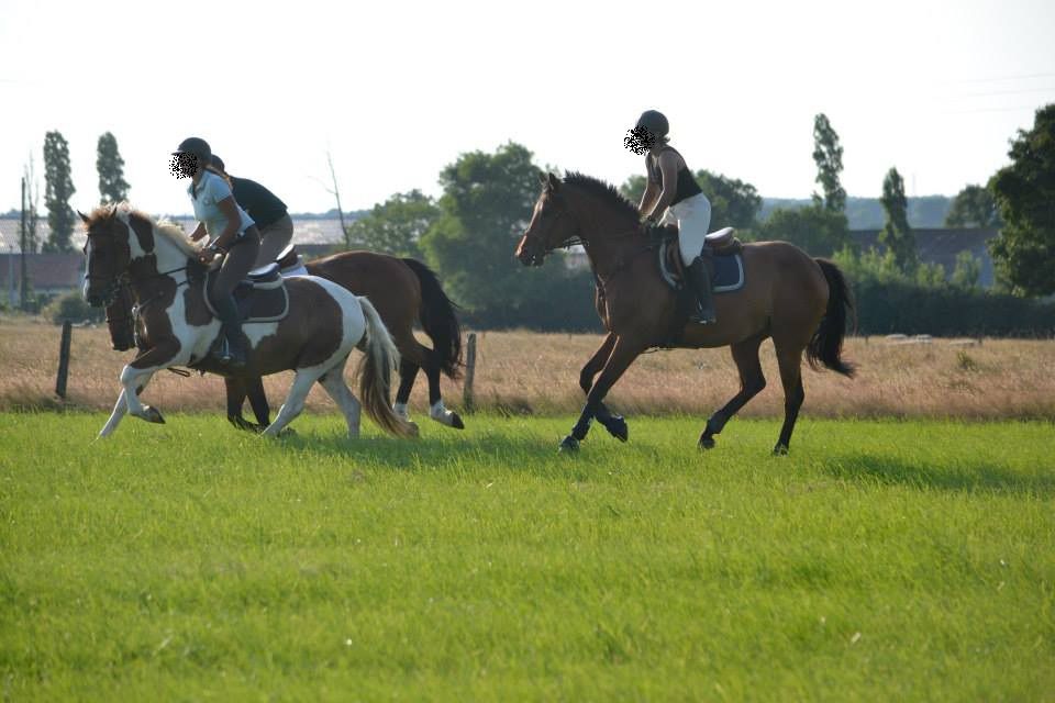 | Dire merci | Le pie, c'est une vraie bombe ce cheval! Dans tous les sens du terme! Genre quand il est arrivé, tu mettais le pied à l'étrier et zou, il partait au galop, qu'importe la position du cavalier dessus (ou le plus souvent accroché à côté).En saut, il saute trèèès bien, mais si tu tires ou que tu t'accroches à la bouche, il se met en orbite! Mais c'est un très chouette cheval. Je sais pas si le trotting a été une vraie récré, peut être pas le trotting en lui même, c'était assez physique. Par contre le galop derrière, il s'est éclaté! ![]() |