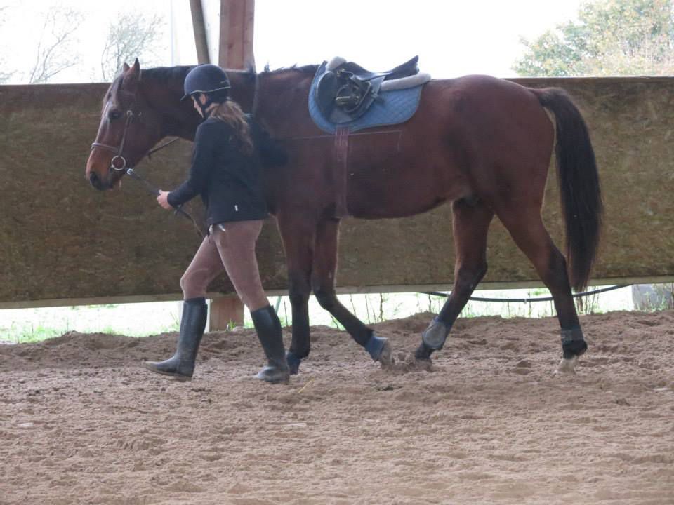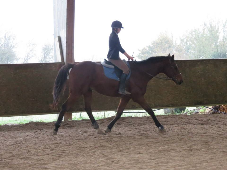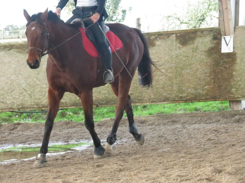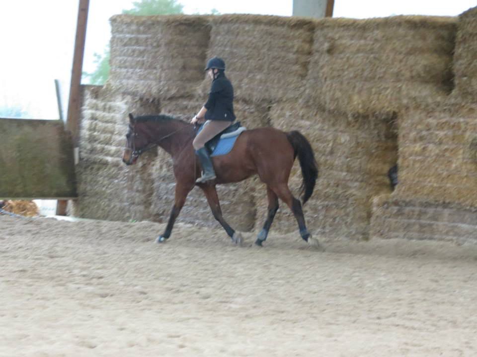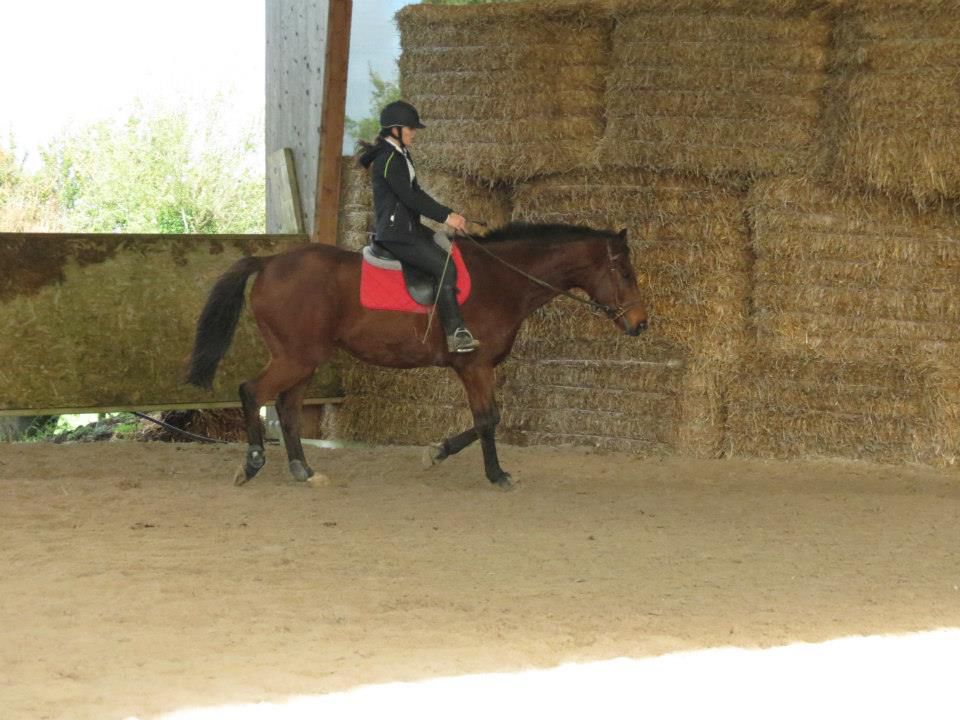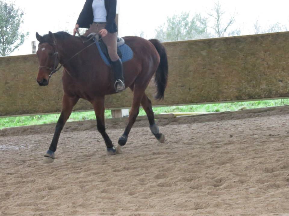 | Dire merci | Donc les photos ( )Sur 2 séances, même s'il y en a eu une autre avant. Je me rends compte que Lasco a beaucoup de mal a disserner les demandes de mes jambes quand il s'agit de bouger hanches ou épaules. J'ai repris ça à pied, au stick et en main en filet. Apprendre quand le stick solicite un postérieur, ou demande le déplacement. La copine bosse pas mal comme ça. Du coup, on se complémente pas mal. En selle, vous verrez qu'elle a beaucoup de mal à monter avec du contact. Mais c'est pas bien grâve. Au moins, Lasco apprend à aller chercher son mors. Il y a quelques subtilités qu'il reste à mettre en place, notament quand on cherche une attitude haute ou basse... Mais ça va venir. Ensuite, quand toutes ces aides seront bien en place, on reprendra les cessions, EDD et compagnie en selle avec l'aide au début de quelqu'un à pied. Je sais pas si je suis très clair, mais bon, pas facile à expliquer... 1er séance, les début à pied. ![]() Soliciter le postérieur sans fuir à cause du stick ![]() ![]() Reproduire les demandes avec l'étrier, aider du stick si besoin ![]() En selle, même boulot avec le stick couplé à la jambe ![]() ![]() Il va chercher son mors mais c'est pas encore ça ![]() Au trot, pareil, en le gardant le plus actif possible. Il a beaucoup gagné en qualité de trot, bien plus d'impulsion, mais difficile pour lui de rester en équilibre ![]() ![]() ![]() Il se tend de mieux en mieux ![]() C'est assez physique comme séance. Sachant qu'en plus il y a bien 20 minutes à pied, si on ajoute 30 minutes en selle, ça sert à rien de trop pousser. ![]() Mon beau Lasco en rondeur et pleins de poil! ![]() Voilà, séance assez mitigé, de bonne choses, surtout niveau impulsion, mais pour le fait de venir sur le mors, dur dur. Sachant que sa cavalière du moment, ça n'était que ça 2ème séance avec lui, il faut qu'elle trouve les boutons elle aussi! |