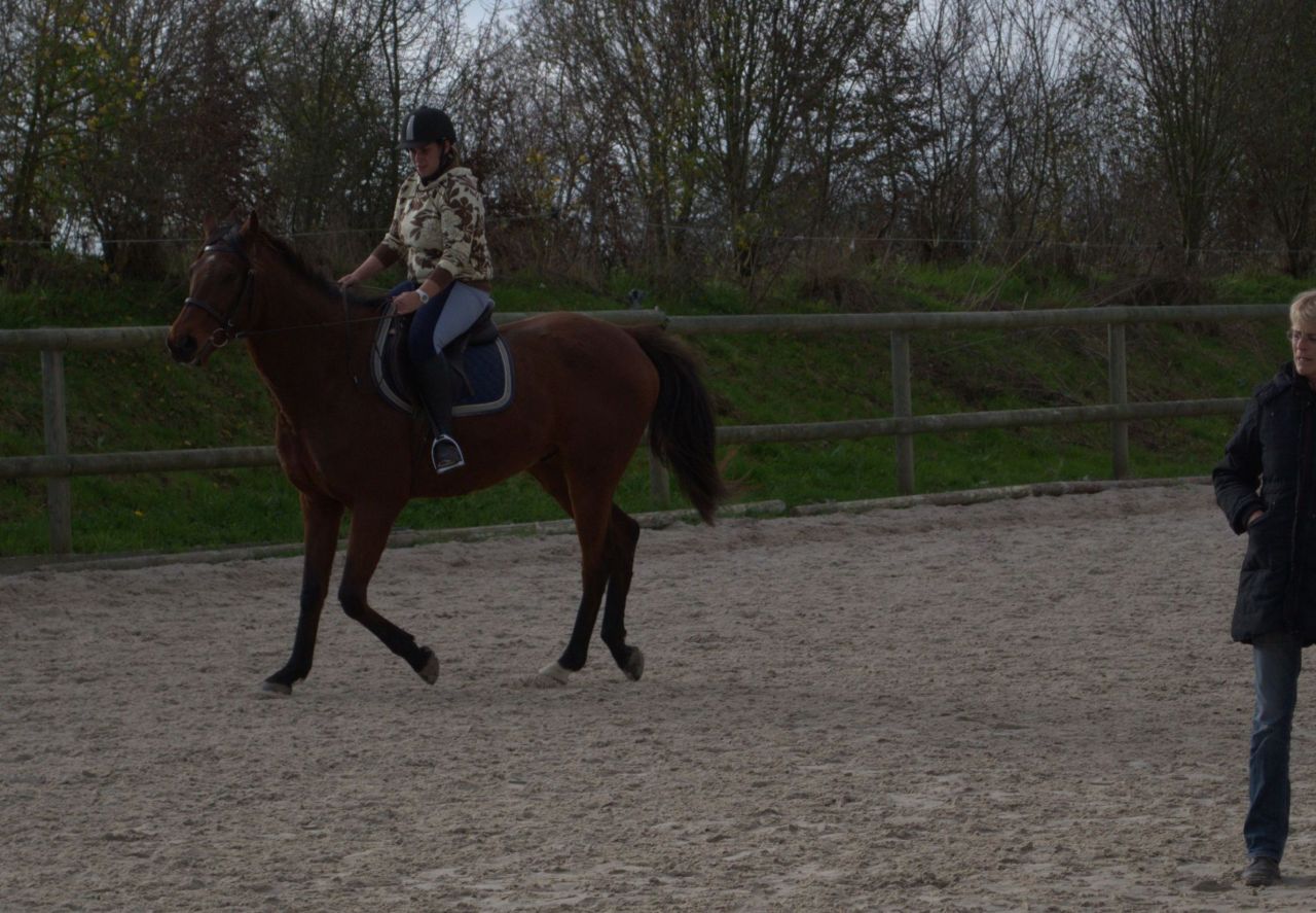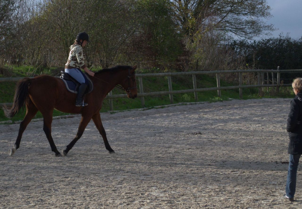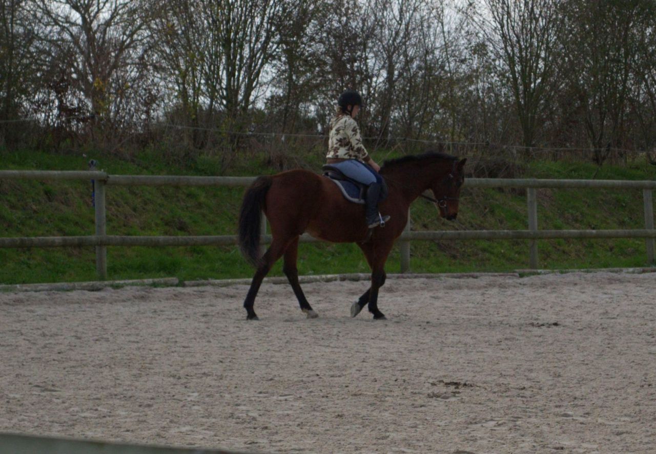 | Dire merci | J'ai eu un @€*# de bug, j'ai du tout recommencer! J'espère que j'ai pas caffouiller quelque part. Je commence par les photos. J'espère me souvenir de tout. Donc on commence par du blabla. Là où on est dans le travail, les soucis que je rencontre dernièrement. Lasco était cool, dès le début, je le sentais bien. Ca se voit là. ![]() On commence au pas, je remonte sur mes rênes. Mais trop vite. Lasco se crispe alors qu'il marchait rênes longues, complètement détendu. ![]() Je lui demande de se mettre bien trop haut pour lui sur un début de séance. M me laisse faire pour le moment. ![]() Il y a pas mal de raté! Normal! ![]() ![]() On part au trot. C'est un peu la cata. Je n'ai pas le son au boulot, donc j'ai un doute sur ce que M me disait. Mais de mon souvenir, elle a vite vu que ça n'allait pas. Elle a un peu laissé faire quand même, mais on repasse vite au pas pour redétendre nos chevaux. Blabla sur le contact si j'ai bonne mémoire. La vidéo est un peu longue, j'ai pas pu la couper, je n'ai plus aucun logiciel de vidéo qui fonctionne, donc tant pis. Le pas gagne en qualité quand Lasco est détendu! ![]() Et ça se ressent au trot, évidemment. ![]() ![]() ![]() Mais parfois, je merdouille! ![]() ![]() On repasse au pas pour faire une pause. Puis on reprend nos rênes, mais doucement, en gardant nos chevaux détendu. Si vous avez le son, vous avez entendu que l'APN n'avait plus de baterie (j'ai oublie de le recharger ) donc pour la suite, c'est le même APN qui prenait photos et vidéos. J'en ai moins que j'aurai voulu du coup.![]() Au trot. On s'est mis à travailler les changements de mains. Là, c'était vraiment pas top. De gros soucis pour gérer mon équilibre et mes mains. Le pauvre Lasco fait ce qu'il peut avec la cavalière qu'il a sur le dos!![]() ![]() *** à suivre *** |