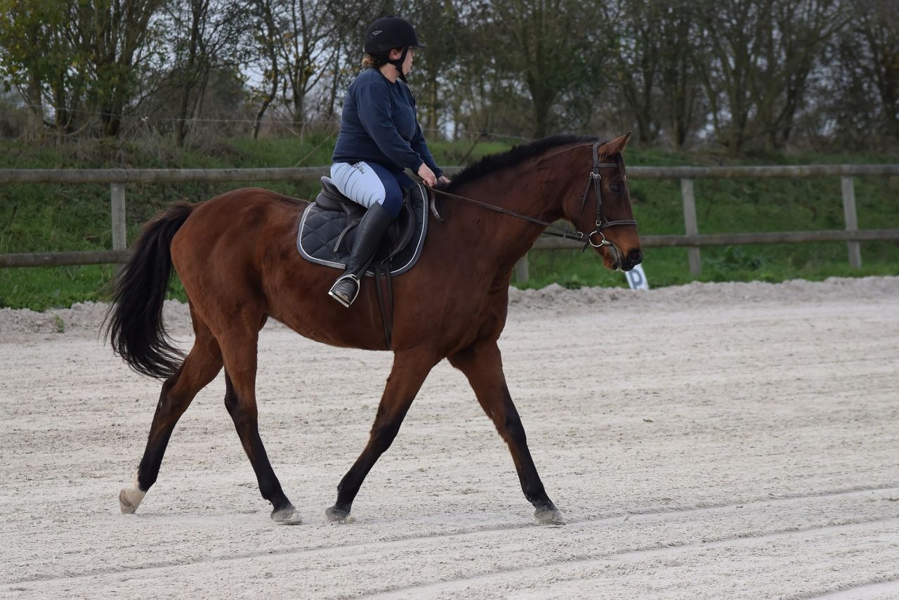 | Dire merci | Mercredi, c'était concours interne de dressage. J'ai engagé la club 3 préliminaire après 5 ans sans concours du tout! J'avais hate. On n'est que 2 dans l'épreuve, 6 au total sur la matinée... Et oui, le dressage n'intéresse pas beaucoup de monde en club encore... Bref, je pars détendre 45 minutes avant mon passage. Je suis seule, au moins, j'ai la paix. Détente au top. Lasco a du gaz, dans le bon sens, il est au ordre, réactif aux jambes, super détendu. Pas parfait, mais vraiment bien. Tout passe facile, c'est top. Les autres cavaliers arrivent pour détendre quand j'ai quasi terminé. Pas de changement pour Lasco, toujours à 100% avec moi. C'est à nous. Je m'y attendais, mais c'était pire que je ne le pensais. Je sors du manège direction la carrière. Là, il voit que tout est vide, il y a les lettres d'installé... très certainement qu'il me sent me tendre aussi... il met les freins. Comme à l'époque où on sortait un peu en concours! Sauf qu'on est à la maison quoi! En temps normal, j'ai le stick qui m'aide quand il est comme ça, mais reprise oblige, je n'ai que mes jambes. Bon c'est parti... Il m'a fait toute la reprise derrière les jambes, il m'a cuit en moins d'une minutes. Et du coup, plus de décontraction de ma part, les jambes qui remontent, la cavalière qui rebondit sur la selle et qui est très vite asphyxié. MAIS, malgré les fantomes qu'il voyait partout, sa retenu, il a été exemplaire. Pas un écart (des hanches qui fuiens la piste, mais sans jambes, hein, il trouve les portes de sorties), pas un seul, j'ai été super fière de lui!!! Alors oui, il manquait de rondeur, d'incurvation, de décontraction, d'impulsion. Oui il m'a fait une rupture d'allure parce qu'il a vu un "jesaispasquoi". Oui, moi j'ai galéré à ne pas le gêner, à faire des figures, des transitions propres, mais après autant de temps sans cours, je suis fière de lui et de nous. On a énormément de boulot, mais ce sont des objectifs! Quelques photos: ![]() ![]() ![]() Ce jury en E nous a joué des tours! ![]() ![]() ![]() La partie au pas où il a été plus que parfait ![]() ![]() *** à suivre *** |