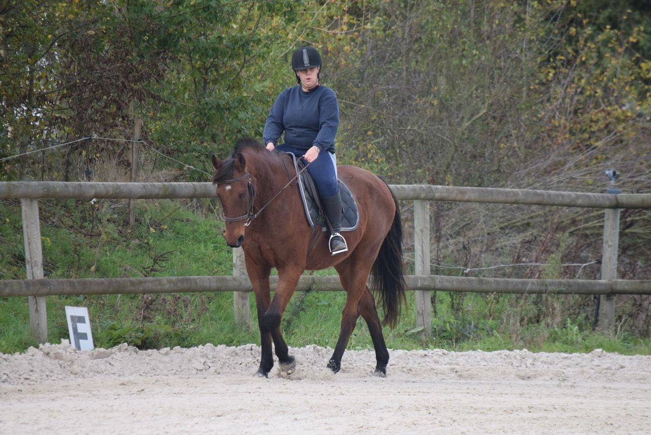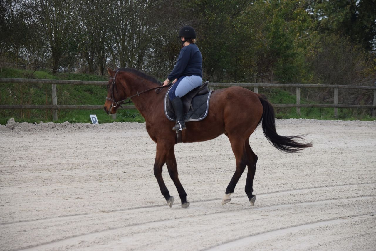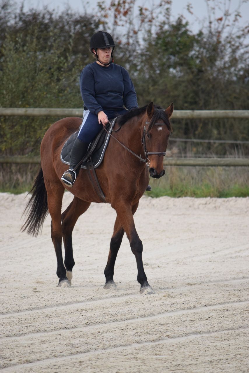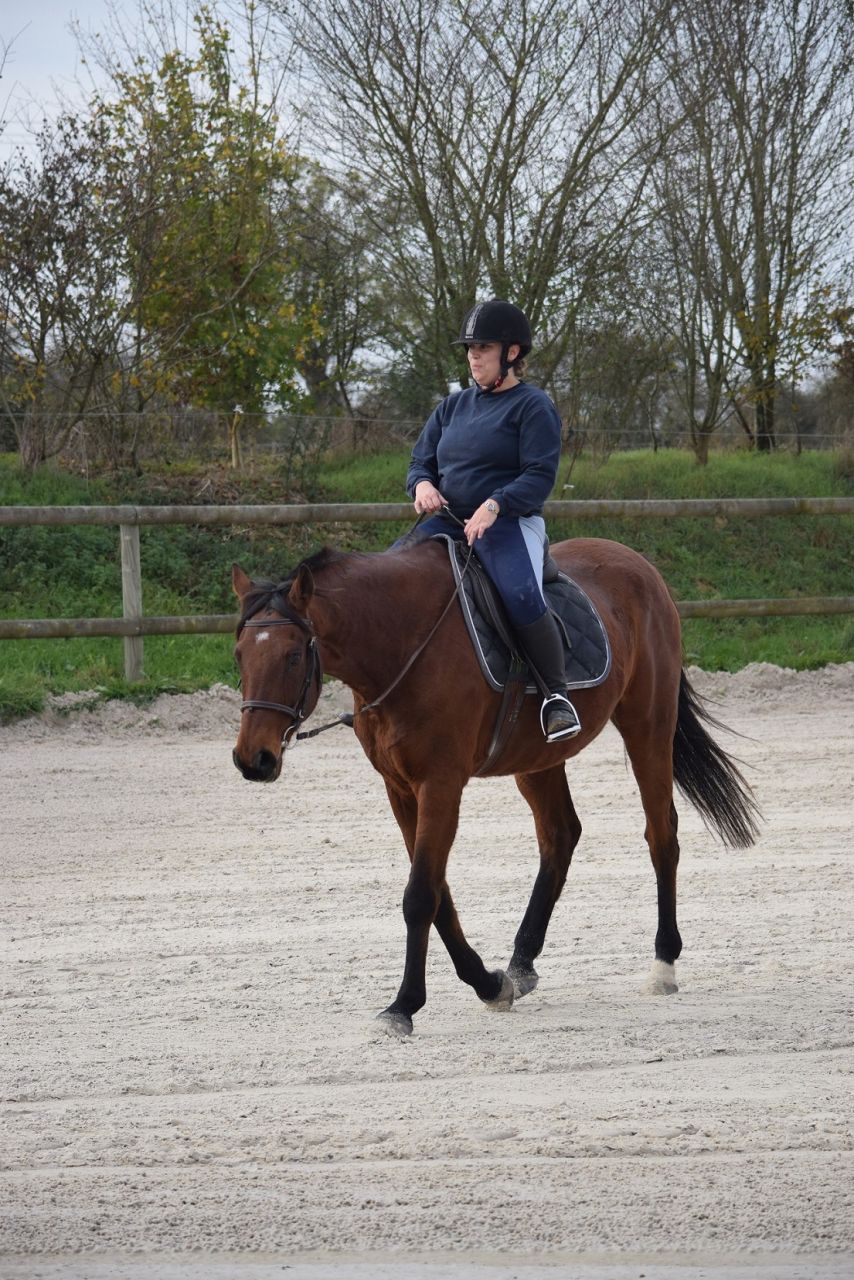 | Dire merci | J'ai enfin pu remonter mon cheval! Qui était en grande forme d'ailleurs! Je le trouve moins moche que le week end dernier, il a repris un peu, donc je surveille et j'aviserai. Il lui manque trop de kilo à mon gout, mais il a un meilleur oeil... j'espère que ça n'est que passager... Donc samedi, séance tranquille. C'est une reprise, on fait cool mais sérieux. Au frais et dans le vent dans la carrière. Lasco est vraiment super! Je me régale. Dimanche, direction le manège. Il fait beau mais comme je me suis inscrite au concours interne le 1er novembre, j'ai besoin des lettres pour m'entrainer. Finalement, j'engage sur le club 3 préliminaires. Beaucoup, beaucoup plus simple que la grand prix, mais 5 ans sans concours, je préfère ne pas nous mettre dans la m*rde, faire un truc propre. Mais du coup, ça me donne des objectifs... bosser pour dérouler la club 3 grand prix, puis la club 2... Donc dimanche, détente classique (peut être un peu longue). Puis j'ai travaillé la réactivité à la jambe (je bosse ça depuis un moment déjà, j'ai laissé trop longtemps Lasco s'endormir sur mes jambes). Là je veux que ça pulse, en avant, en avant, en avant... Puis les transitions rapprochées. Arrêt à une lettre, au pas, au trot à la suivante, puis au pas 2 lettres plus loin... etc Dans un manège 20*40, c'est très rapproché, mais du coup, Lasco était super concentré sur mes demandes. Il envoyait grave! ![]() J'ai fait l'erreur de vouloir travailler le galop, mais la détente a été longue, le travail demandé assez exigent... et du coup, en travaillant le galop, je l'ai cuit... Bon après, il était extra au galop, bien en avant, léger... Du coup, j'ai déroulé une fois, cette reprise est extrèment basique, 2 cercles au trot, 2 au galop, du pas allongé et basta... c'est là que je me suis rendue compte qu'il était cuit. Moins de mouvement en avant, un peu moins de réactivité... mais on a fait ça bien et c'est l'essentiel... pas parfait, mais correcte! Et pour finir mon petit pavé, 2 photos de l'état de Lasco en ce moment. Je veux bien votre avis! Bon ok, il a été pire, et rien que le week end dernier, on lui voyait plus les côtes (mais il a fait un poil de dingue, je me méfie du visuel parce que je l'ai sens sous le poil). Mais voilà, trop fin pour moi... je ne comprends même pas l'énergie qu'il arrive à mettre au travail... ![]() ![]() |