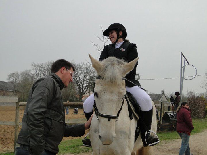 Déconnecté | J’ai regardé photos + video ! D’abord, tu as de la chance d’avoir pu repasser…quand tu m’as dis qu’il y avait eu un chien devant l’obstacle, je croyais qu’on allait le voir sur la photo lol ! Pas de mal la chute ? Ensuite, effectivement tu es stressée…ton bassin est complètement contractée, tu rebondis et t’accroche un peu aux rênes..bref j’ai fais la même lors de mon concours en octobre…le stress est un véritable parasite à cheval… Malgré tout, tu peux être contente, pour un premier tour, c’est déjà bien. Comme tu dis, il va falloir en faire et en refaire et tu verras qu’à force, tu auras beaucoup moins de stress et de pression. Je pense que si tu peux garder le gris au début pour tes premiers tours se serait pas mal, il va bien, y a juste à piloter…je pense que ca te donnerai confiance ! Les photos sont top, ca fait plaisir de te voir en concours !!! |