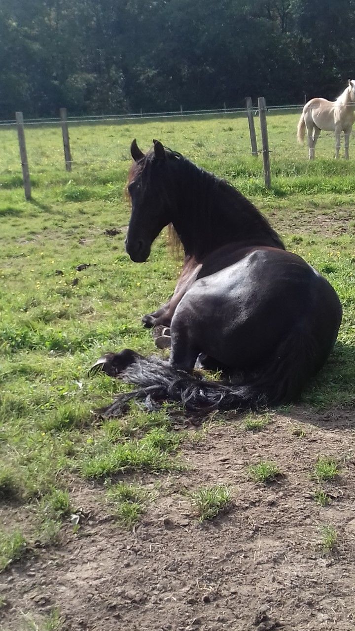 | Dire merci | Ah oui il me semblait bien voir un gros tas noir à ses pieds Le cheval c'est ca...des périodes super et d'autres....vraiment pas coool !!!!! |