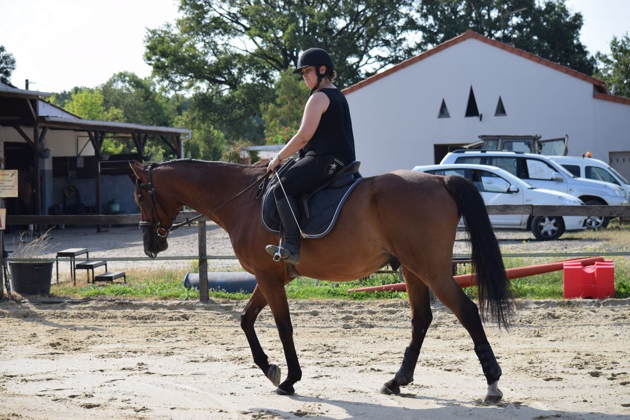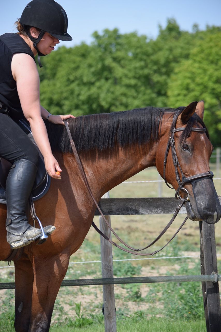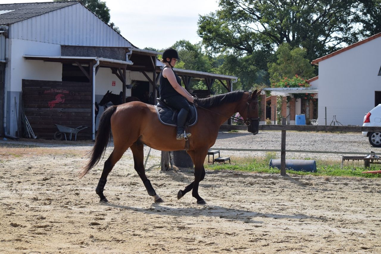 | Dire merci | Le maréchal est passé jeudi. J'en ai profité pour aller à la pension jeudi soir. Séance de jeu dans le rond de longe! Il avait la patate! Très demandeur et expressif! C'est assez rare qu'il soit comme ça, alors j'en ai bien profité! Et lui aussi, il semblait vraiment content! ![]() Et dimanche, cours! 8h30 à cheval pour profiter de la fraîcheur. C'était trop bien, mais j'en ai chié! On a revu nos gammes et pour une fois, on n'est pas resté 3 plombes sur le même exo. Action - réaction de ma part, Lasco super réactif! Beaucoup de variations d'allure au pas. On allonge, on reprend, on passe par l'arrêt de temps en temps. Tout en restant poser sur le mors. Et comme je n'ai quasi pas fait de faute de mains, Lasco reste posé. Ca fait plaisir. Je l'ai eu super stable sur la main ensuite au trot, les changement de main passaient très très bien. Après une pause, on repasse au pas. Un peu plus galère pour lui sortir les hanches sur le cercle, à gauche c'est bien, à droite plus dur, il se tortille énormément. Mais on progresse bien sur cet exo. On a ensuite retravaillé au trot. Un travail sur moi surtout. Lasco avait du mal à s'incurver à gauche. Main externe trop ferme, pas assez relâché. Il fallait en même temps que je joue énormément sur ma rêne interne pour le décontracter et avoir une belle incurvation. Quand j'ai enfin compris et surtout quand j'ai enfin réussi à coordonner mes 2 mains, ... ... trop trop bien! J'ai entendu un vague "ah bien, là, il ressemble à un vrai cheval" Et les sensations là haut était top! J'en faisais ce que je voulais. Lasco réagissait au moindre frôlement de la jambe, la moindre vibration sur les rênes... Pfiou, c'est pour ces quelques minutes d'extase à cheval qu'on en chie aussi longtemps! Et pour finir, galop aux 2 mains. Là aussi je trouve qu'il y a du progret. Je vais plus facilement dans le vrai galop. Lasco commence à prendre confiance et venir se poser. Il n'est pas rond comme dans les autres allures, mais je commence à sentir un vrai contact. Je peux maintenant varier l'allure au galop, le faire avancer franchement et reprendre. A retravailler, je manque de jambe et 2 fois il est repassé au trot. Voilà, en 6 mois de cours, on avance doucement mais surement. ![]() Message édité le 23/07/19 à 08:04 |