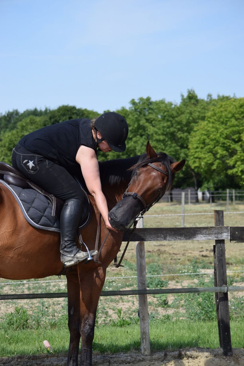 | Dire merci1 | Samedi... il faisait déjà 30 degré, à peine 10h... Je suis arrivée au pré, Lasco était en nage. une bonne partie des chevaux au pré était dans cet état. Malgré les abris, l'eau à disposition. Il m'a fait de la peine.Je le remonte aux écuries. Ca sera juste une douche aujourd'hui. J'ai pris mon temps pour le mouiller, Lasco bougeait pas mal au début. Puis une fois refroidit, il a posé sa tête sur la barre d'attache, lèvre pendante, yeux mi-clos. Je lui passais le jet sur le dos et lui s'endormait! J'en ai profité pour le laver réellement. Il a bien apprécier le grattage de queue, de frotter entre les antérieurs pour faire tomber les croûtes du aux piqûres d'insecte. Un bon moment rafraîchissant. Dimanche, les températures sont tombés. 20 degré à 10h! Chouette, à cheval! Je décide de ne pas longer avant de monter. Lasco a tellement souffert de la chaleur ces derniers jours, je ne veux pas le cuire avant de monter dessus.J'ai bien fait. C'était top! Il avait une super énergie. Pas besoin de lui demander d'avancer, il se portait bien. Une tentative de faire le couillon à un moment désamorcé rapidement en lui demandant un allongement. J'ai pu galoper dans le calme. Il s'est énervé un peu quand j'ai changé de main, pensant que j'allais redemander le galop. Donc non, on reste au trot, on refait une transition, on rechange de main. Et quand il a enfin oublié le galop, je lui ai redemandé. Et top, dans le calme, malgré que je lui ai demandé du pas. 30 minutes, pas voulu le faire trop transpirer. Nouvelle douche et retours au pré (nouveau pré, avec plus d'herbe ) |
