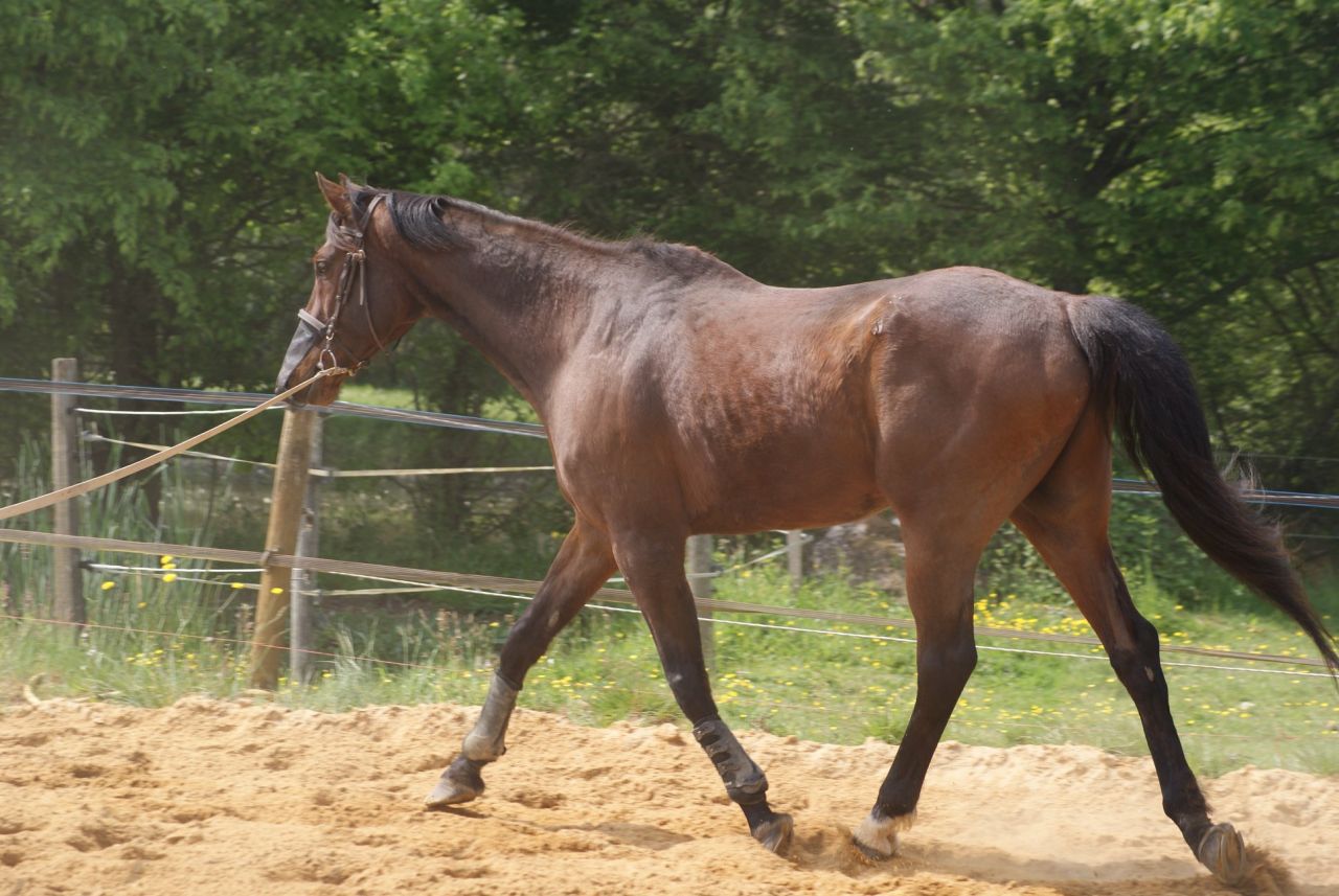 | Dire merci1 | Toujours en attente des résultats du test Cushing. En attendant, huile dans la ration. Si ça n'aide pas, je vais le mettre sous fénugrec. J'essaye de le remettre au boulot tout de même. Le week end dernier, longe de travail et séance monté par Cocktail_Jet. Et ce week end, la même et je suis montée dessus en fin de séance. Le positif, c'est qu'il a de l'énergie, il est top. Assez d'énergie pour faire des bons dans tous les sens en longe et être dynamique en selle. Les séances ne sont pas longues, juste assez pour le mettre à l'effort. Il finit sans être essoufflé et avec un bon oeil. |