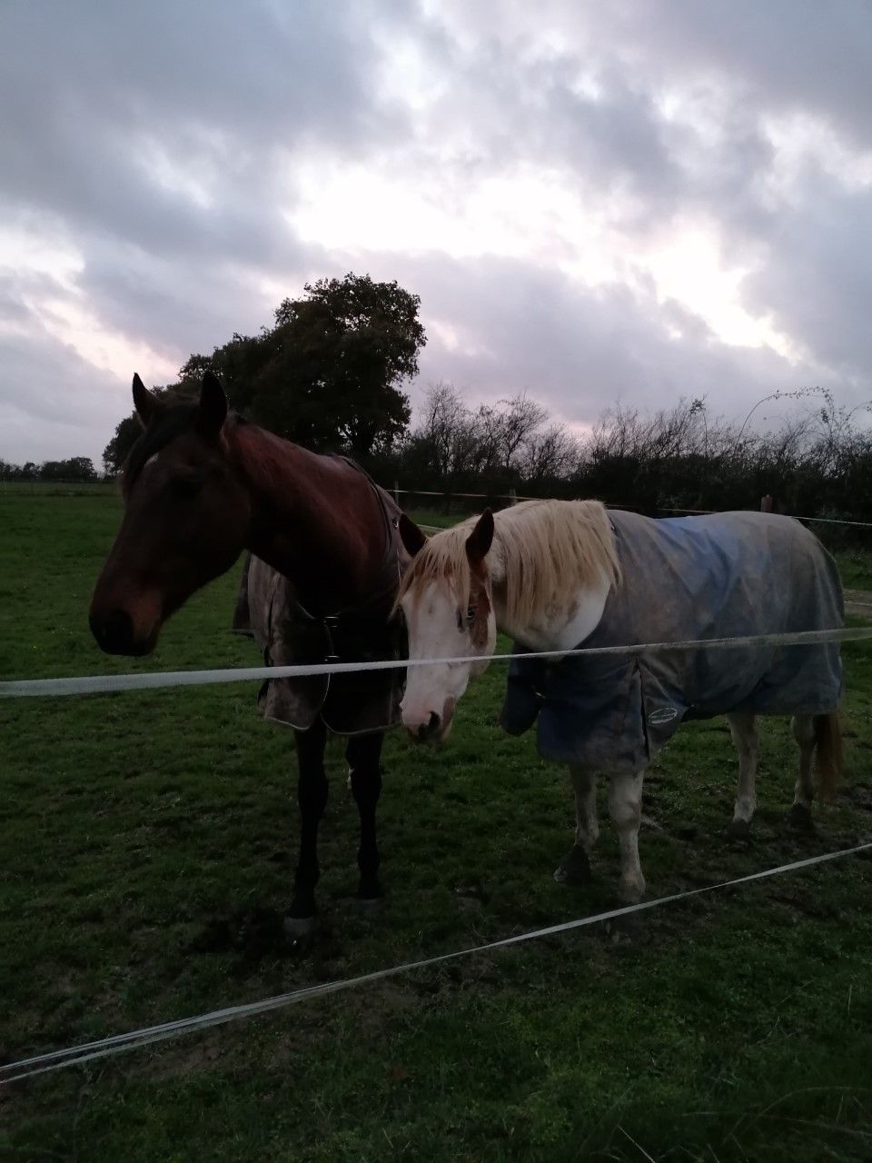 | Dire merci | Voilà, la motivation ce week end, compliqué. Alors le froid, c'est une chose. Quand il est sec, ça va. Mais alors avec la pluie en plus... Du coup samedi, rien. (en plus on attendant un coup de file avec mon homme pour une offre d'achat qu'on a fait la semaine dernière... du coup, pas eu de réponse clair, bref) Et dimanche, juste une longe de travail. Zéro motivation pour monter. Et je me suis prise une saucée en ramenant Lasco au pré. J'étais trempée, frigorifiée! |