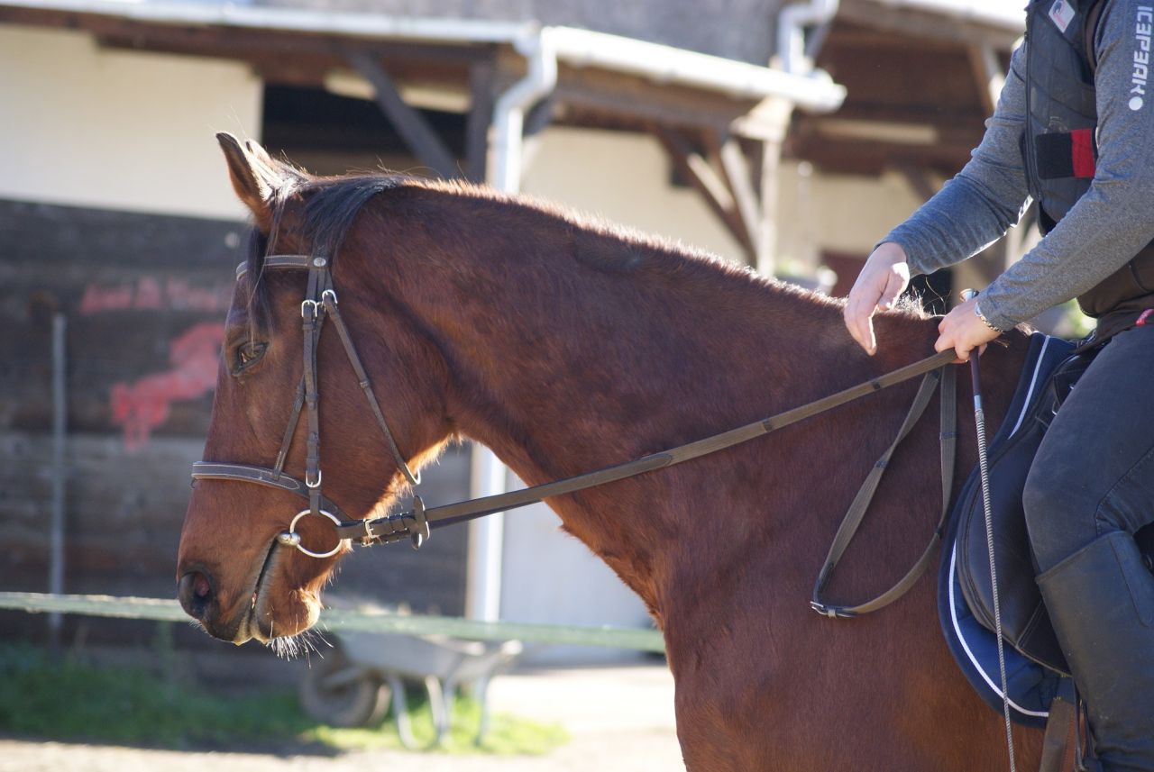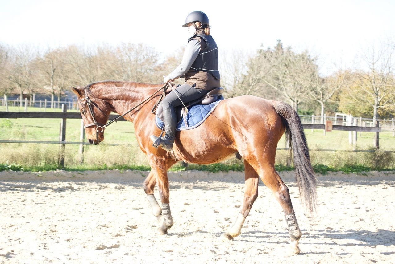 Il avait besoin de jeter un peu son gaz. Puis en selle. Un peu sur l'oeil. Du coup, moi un peu contracté. Après une détente rapide, je décide de l'occuper en passant des barres au sol. C'est fou comme il se tortille devant. J'ai bossé la rectitude à fond, mais pas facile. Vraiment, quand je l'avais bien dans les jambes, il se creusait devant pour passer les barres n'importe comment...