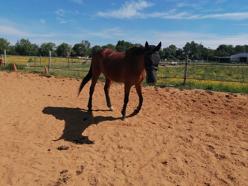| Dire merci | Lasco a pu être longé cette semaine par Cocktail_Jet. Ca lui a fait du bien. Je suis montée samedi et il était top! N'arrivant plus à bosser seul, je me suis télécharger une appli pour avoir des idées d'exos. En ce moment, mes cercles ne sont pas des cercles et j'ai beaucoup de mal à tenir les hanches de mon cheval quand je tourne. Du coup j'ai opté pour ça: ![]() C'était encore pire que ce que j'imaginais! Après ma détente, je commence l'exercice au pas et déjà des soucis! L'avantage, c'est que je voyais de suite quand ça n'allait pas. Si je n'arrivais pas droit sur la barre, c'est bien que les hanches ou les épaules n'étaient pas à leur place. Une fois les soucis réglés au pas, on a fait au trot. La même J'ai finis par y arriver, mais je pense que Lasco m'aidait en se prenant au jeu et en anticipant mes demandes. Il faisait super chaud par contre dès 10h le matin. Je voulais finir ma séance pour le bosser un peu au galop, mais j'ai préféré laisser tomber. |