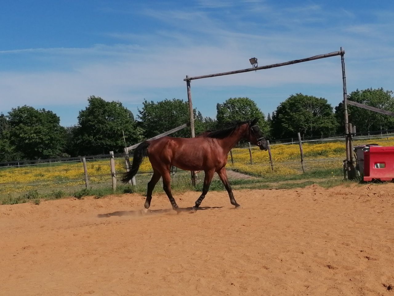 | Dire merci | Juste une séance en liberté ce week end (travaux oblige...) Mais une séance de dingue. Lasco était en très grande forme, avec des ressorts sous les sabots. Après un court échauffement où j'ai un peu galéré à le contenir, je lui ai laissé 5 minutes pour lacher son gaz. Il a du me faire 5 tours de pistes en saut de mouton Après ça, il avait envie de jouer. J'en ai profité, évidemment, ces moments sont tellement agréable. Puis retour au calme, exos pour bien le concentrer, il répond très facilement, un vrai plaisir. Je suis en train d'essayer de programmer une nouvelle balade pour le week end prochain. Mon conjoint se fait opérer le vendredi, à voir s'il tient le choc pour gérer notre fils le dimanche... |