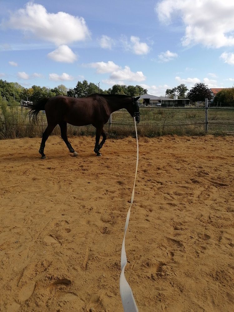 | Dire merci1 | Pas facile de gérer le travail avec la météo des week end (matin) en ce moment... ![]() Dimanche, même s'il fait froid, le soleil est là. Je voulais faire une bonne séance de longe. J"ai longé, c'est sur, mais pas avec les objectifs que je mettais fixé. Il fait très froid, un chien inconnu aboie, une débroussailleuse qui tourne juste à côté de là où on travaille et les copains chevaux autour tout foufou... C'était sportif, mais pas dans le sens où je l'entends. J'ai passé plus de la moitié de mon temps à essayer d'avoir Lasco un minimum concentré sur moi. Et lui a passé le plus clair de son temps la queue sur le dos, au trot de kéké à ronfler (et couper son cercle et ronfler pour tout et n'importe quoi). Le point positif (faut bien que j'en trouve un) c'est qu'on a bossé sur le mental parce que mine de rien, à la fin, il passait partout et respectait plutôt pas mal ce que je lui demandais. Ca a pris 30 minutes mais j'ai réussi !Message édité le 29/11/21 à 09:00 |