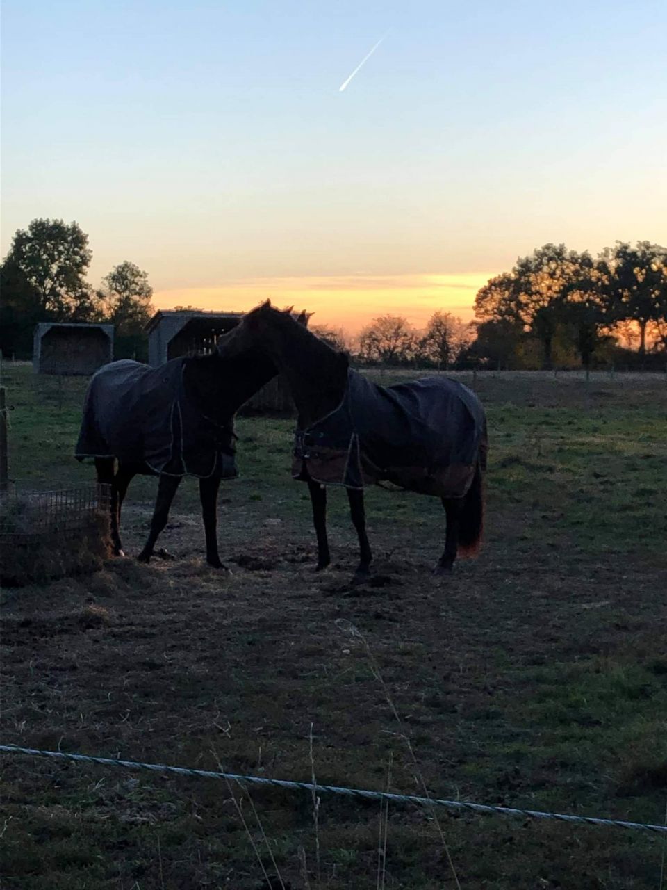 | Dire merci | Bonne nouvelle, la gérante à ouvert entre le pré de Lasco et ces voisins. Ils sont donc à 3 sur 2 parcelles et ça se passe bien. Avec en plus changement de pré donc de l'herbe! Donc j'ai vu la différence au travail! C'était moins tonique! |