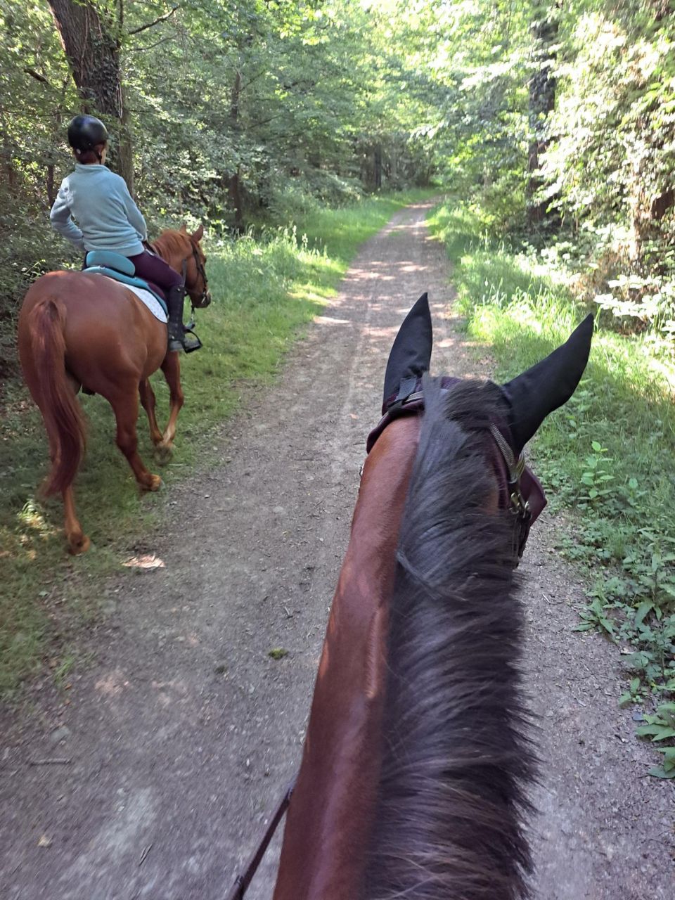 | Dire merci | Des nouvelles ici...![]() Je ne pensais pas que ça faisait si longtemps que je n'étais pas venu! Depuis janvier, tout va bien. Lasco enchaine quelques rares séances en carrière (il n'y a rien à faire, la carrière m'ennuie, plus envie), travail en longe pour entretenir le physique et travail à pied. Il a pris 19 ans cette année... 13 ans de vie commune. Il est au pré avec 2 autres copains arrivés récemment et l'entente entre les 3 est top! Et depuis la fin de la saison de la chasse, je reprends les balades. Accompagné d'un 4 ans (copain de pré) imperturbable en extérieur. 2 sorties pour le moment. On croise de tous et le copain aide à rester serein. Rênes longues quasi tous le temps, derrière ou de front pour le moment. J'ai même trotter hier, un exploit pour moi par rassurée dehors! ![]() Et les toutous vont bien aussi. Héliot vieillit doucement lui aussi mais l'arrivée de Sibelle lui a donné un sacré coup de jeune. Ils s'entendent à merveille! ![]() ![]() ![]() Et Sibelle est déjà grande! ![]() |