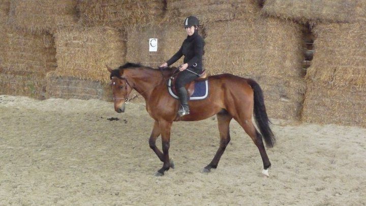 | Dire merci | Et bien hier soir, j'avais la flème d'aller monter, je suis naze en ce moment. En plus, je savais qu'on sautait... Et bien en faite, c'était trop trop bien! Lasco pas top à la détente. En cours collectif, j'ai vraiment du mal à faire de bonne détente. On commence à sauter une croix isolée, puis un vertical... pour une fois, je ne me prends aucun taxi, je suis à ma place! Lasco est délié, il y va facilement... L'enchainement: une ligne de 3 foulées, diagonal avec un vertica, puis ligne sur l'autre longueur à 2 foulées. Autant dire que dans le manège, ça tourne trèès fort... Et bien à ma plus grande surprise, trop facile! Lasco galope bien, il tourne facile, répond aux jambes... Vraiment trop top.Les barres montent, je juge que c'est la hauteur d'une grosse club 3... mais c'est vrai que le dernier obstacle de la dernière ligne parait bien plus haut. C'est reparti... faute de postérieur sur le dernier de la 1ère ligne, ma faute, j'avais les fesses lourdes. Mais sinon, vraiment bien, je m'éclate! En en faite, on venait d'enchainer un truc de bien 90-95cm! ![]() Dernier passage, on bosse sur la ligne a 2 foulées. Ca a encore monté. Lasco me décapsule sur le dernier saut. Mais j'adore! Il y avait 1m, ça faisait longtemps qu'on avait pas passé ça et franchement, ça fait trop de bien! Je suis trop fière! Dire qu'il y a qq semaines, je ne revalidais pas mon G5 d'obstacle sur un parcours à peut près pareil.Normalement, c'est décidé, j'engage Lasco avec moi le 5 juin en club 4 (il n'y aura pas beaucoup de sous bassement à cette hauteur, ma prof est ok avec moi, vu comment il est compliqué en concours, fesons au plus simple). Pas de photos ou de vidéos cette fois, dsl! |