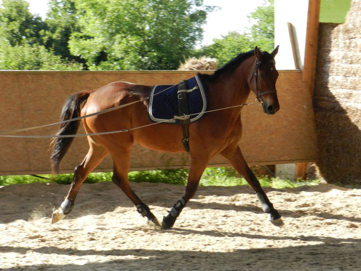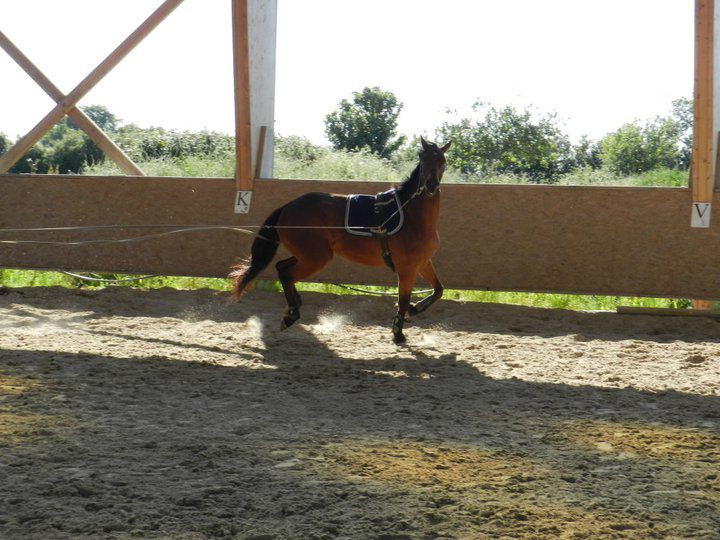 | Dire merci | Ca se passe bien. La rêne extérieur est passé derrière les jambes... Ca se complique. Lasco monte en pression d'un coup, se stress et déconnecte complètement le cerveau. Ma prof reste calme, lui parle pour qu'il se calme, sans grand résultat au début. ![]() ![]() Et boom, en virage un peu trop rapide, il se fauche et tombe... ![]() La vidéo du début du travail et de la gamelle. Après, mon portable m'a laché, plus de baterie! ![]() Heureusement rien de grave (il s'est quand même écorché, mais pas méchant). Il se relève, repart au trot, trotte normalement, donc le travail continue. ![]() Il finit enfin par se poser, réfléchir et là, magnifique, il sort un trot, un galop que je rêve d'avoir un jour monté! ![]() ![]() ![]() |