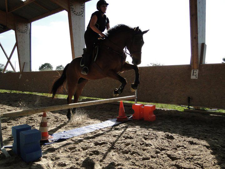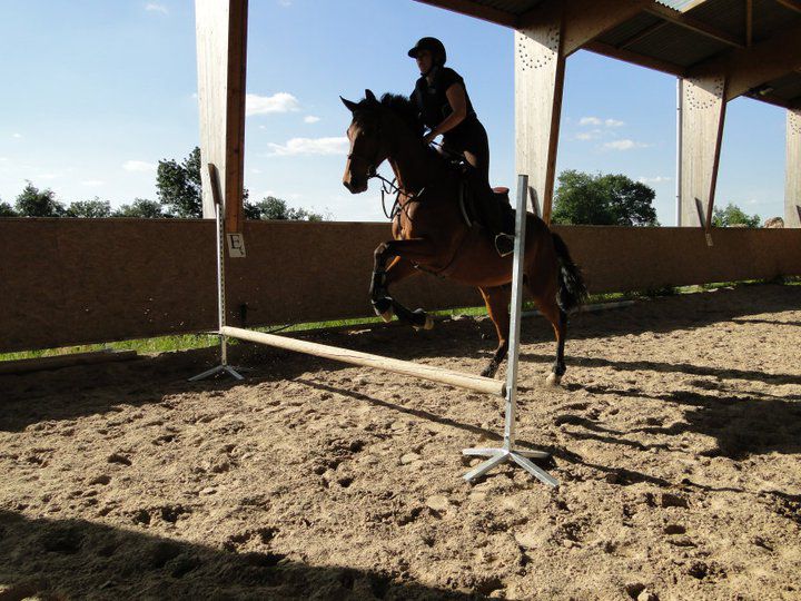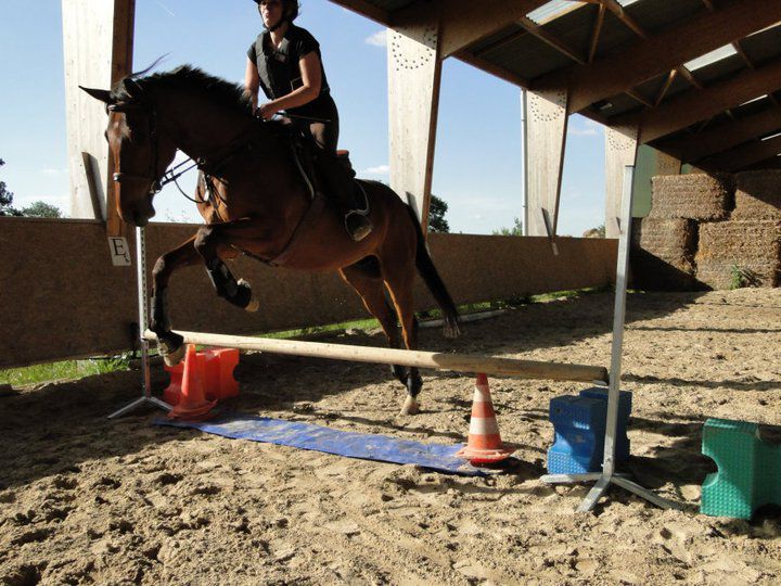 | Dire merci | Petite pause. Je le trouve très joli sur ces photos! ![]() Le c*l dans la brouette pendant la pause... ![]() ![]() On passe au sous bassement rouge. Trop facile encore. ![]() ![]() Bien mon gars! ![]() ![]() ![]() Jusque là, agréablement surprise, ça se passe vraiment très bien. Lasco ne regarde rien, il y va. Et s'il ésite, une pression des mollets suffit à l'envoyer sur la barre. Bref, je m'éclate! Au tour de la bache bleu que l'on met en bidet. Le soleil reflète dessus... ![]() Mais trop facile aussi! ![]() Ma prof décide de corser les choses. Elle prend une grosse bache marron qu'elle fixe sur la barre. 9a fait un sous bassement bien foncé. Il y a du vent, ça bouge pas mal. Je m'attends à un saut énorme (s'il saute ). |