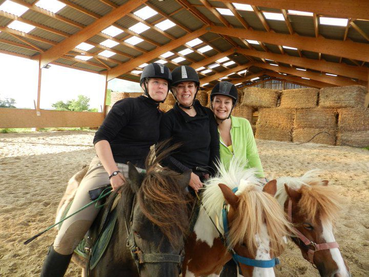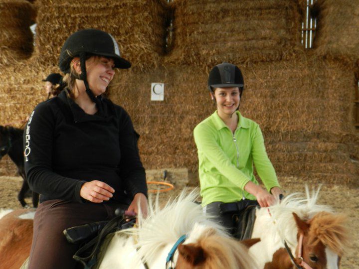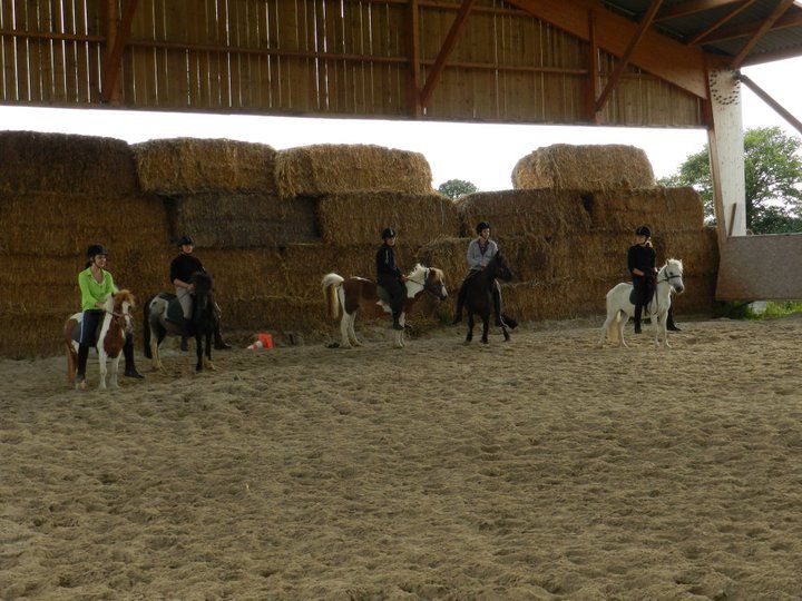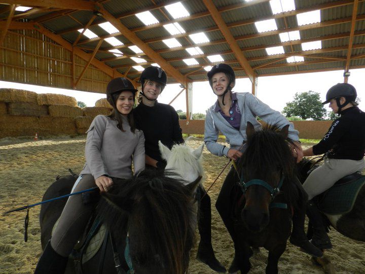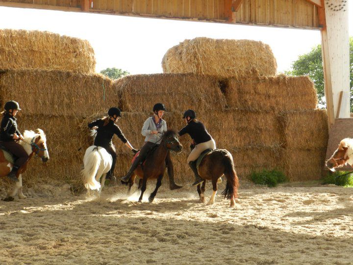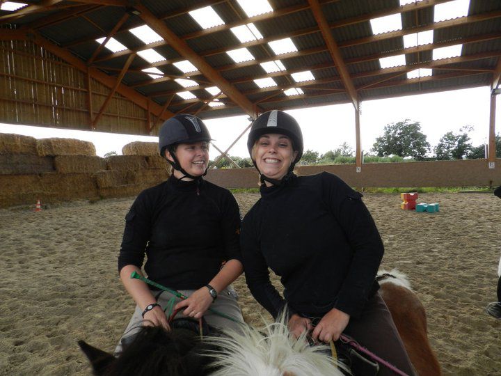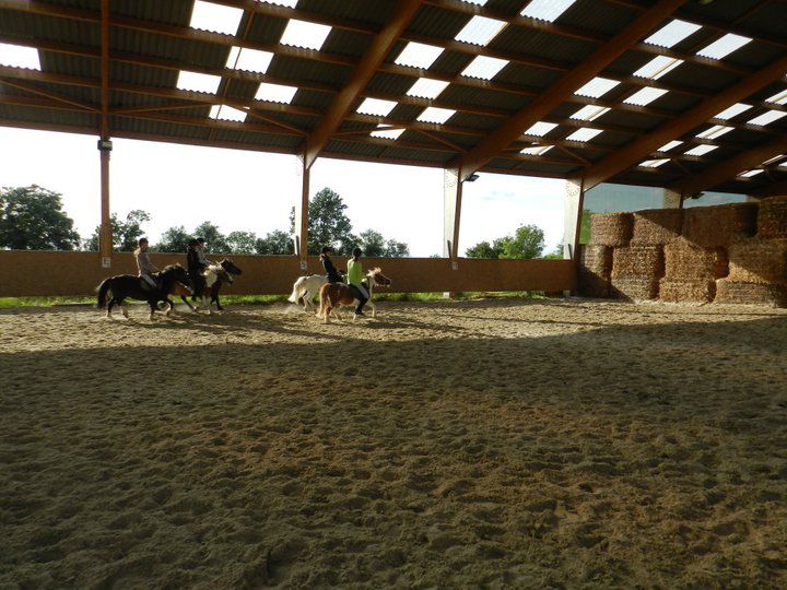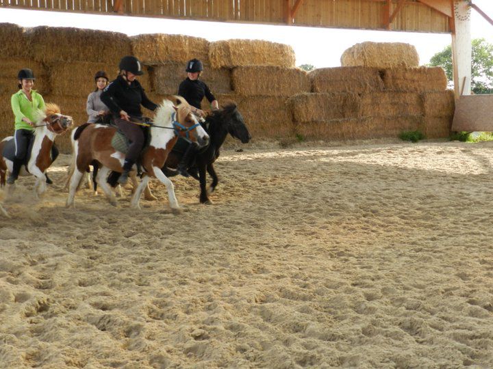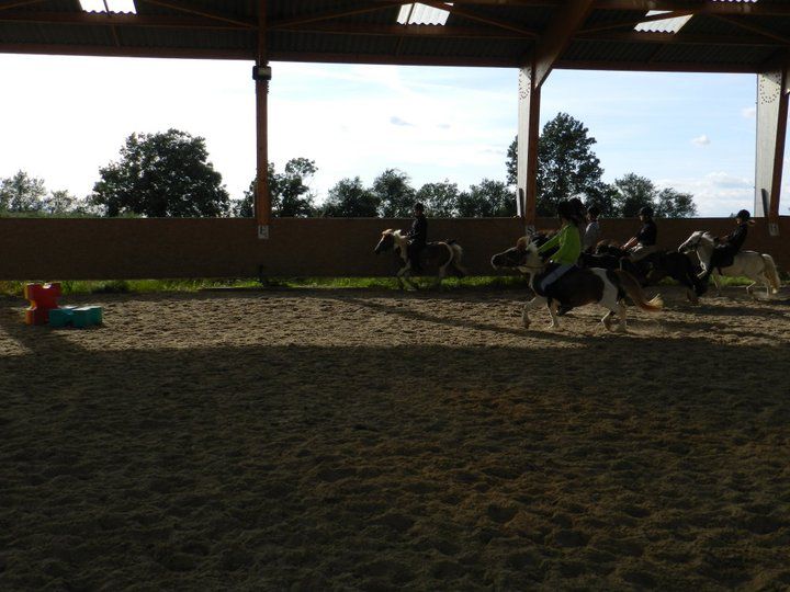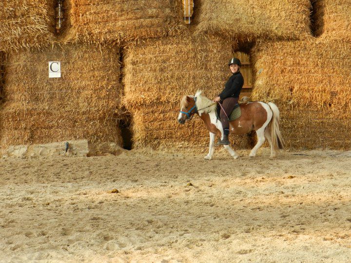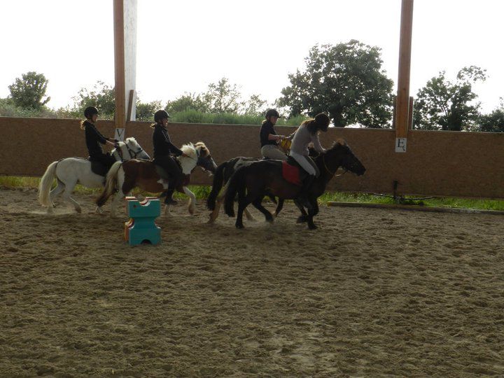 | Dire merci | Allez, envie de vous raconter mon dernier cours collectif d'hier soir. Au programme, jeux à shetland! Bardette qui fait mal aux fesses, on fixe les rênes au licol (mieux les licols quand on joue) et c'est parti! Ma ponette du jour, Aïcha! ![]() Présentation des équipes: 1ère équipe, "les bourines" ![]() 2ème équipe, "les bananes" ![]() Remarquez la petite demoiselle derrière qui défait les croupières des shetland! (j'ai été lui filer un coup de main par la suite)Trop fière de notre bêtise ![]() Gros fou rire après tentative (raté) de l'équipe adverse pour nous faire la même chose! ![]() Petite détente pour les poneys, on trotte gentiment pour les échauffer. Là, un petit problème de taille se pose... malgré mon super soutif de sport, le trot d'un shetland est comment dire... mouvementé... ![]() Tentative de réglage du problème... ![]() Les poneys ont voulu éviter rentrer à la maison plus vite que prévu... 2 ont complètement défoncé l'entrée du manège! ![]() ![]() J'en avais mal aux joues tellement j'ai rie, dès la détente, tout le monde était en forme. ![]() *** à suivre *** |