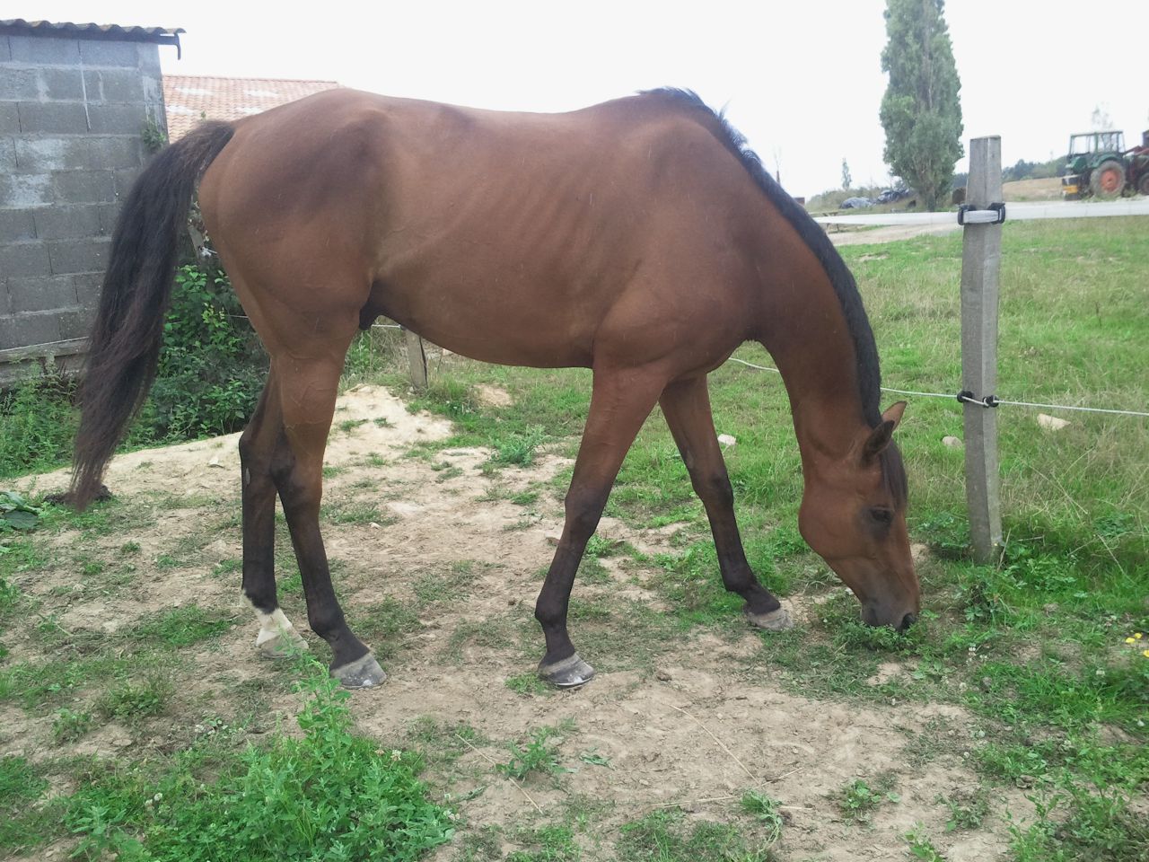 | Dire merci | Ca me fait vraiment chier. Il a de l'huile dans sa ration, des grains, du foin. Il bosse régulièrement, mais sur des séances courtes pour pas qu'il puise dans le peu de réserves qu'il a. Prise de sang ok, vermifuge à jour... Et dans le boulot, il régresse! Youpi, c'est trop la fête en ce moment... |