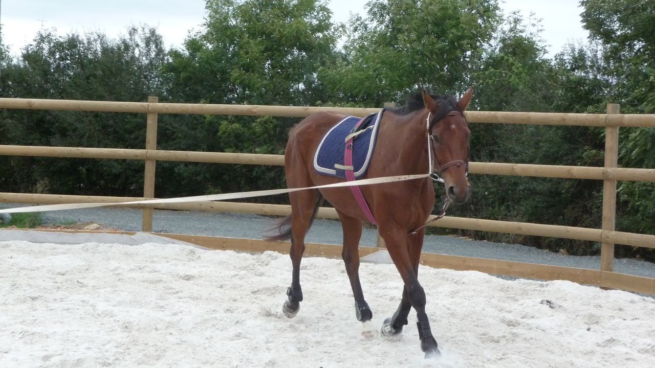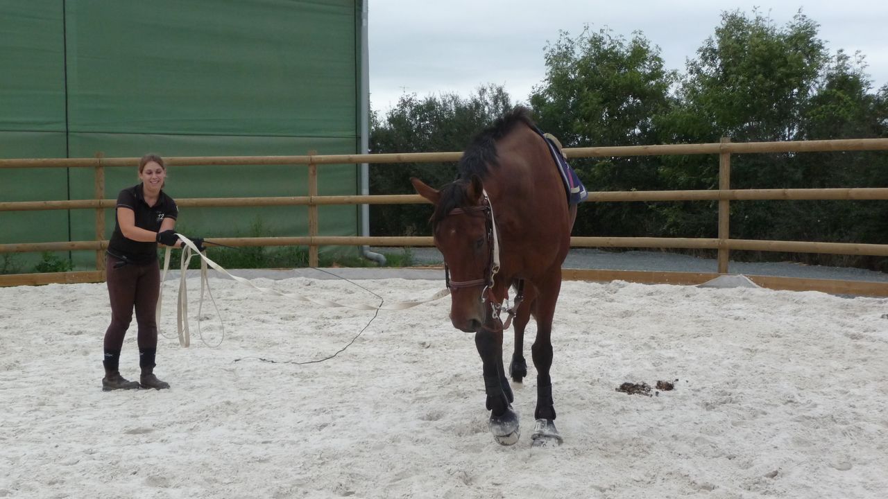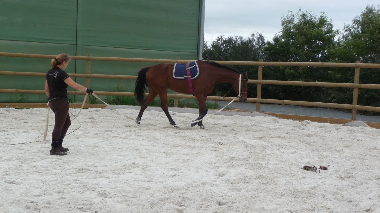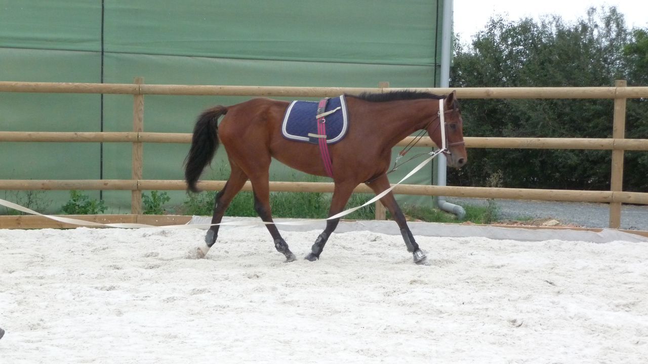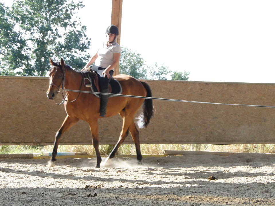 | Dire merci | pas facile de bosser avce la chaleur :moi aussi au trot il a plus de mal pour l'extention, avec le mono on bosse beaucoup les flexions et les cercles ça aide |