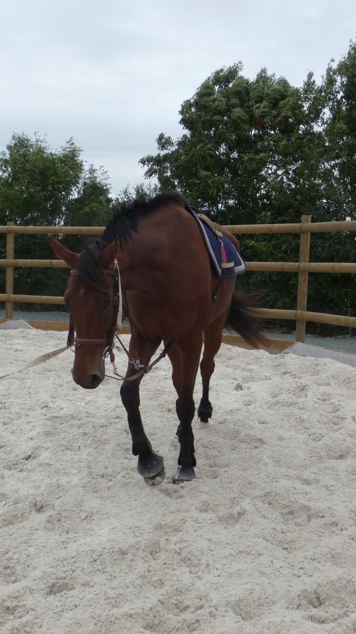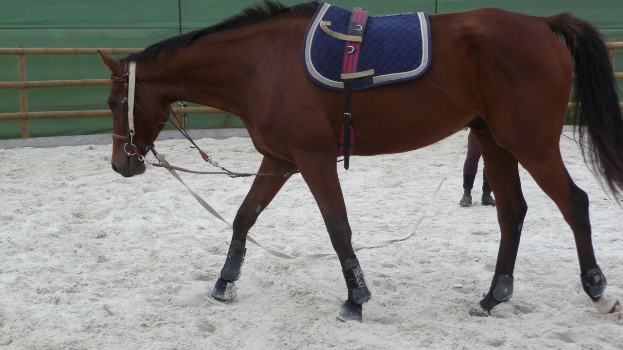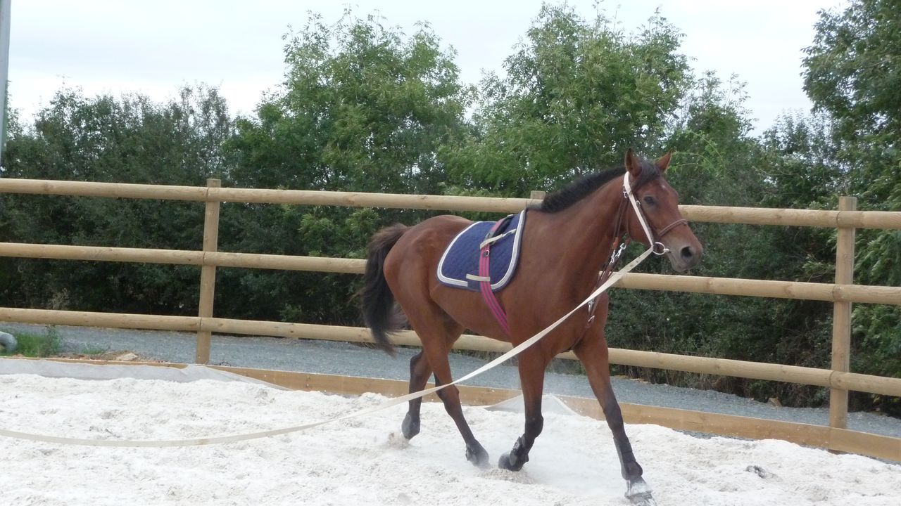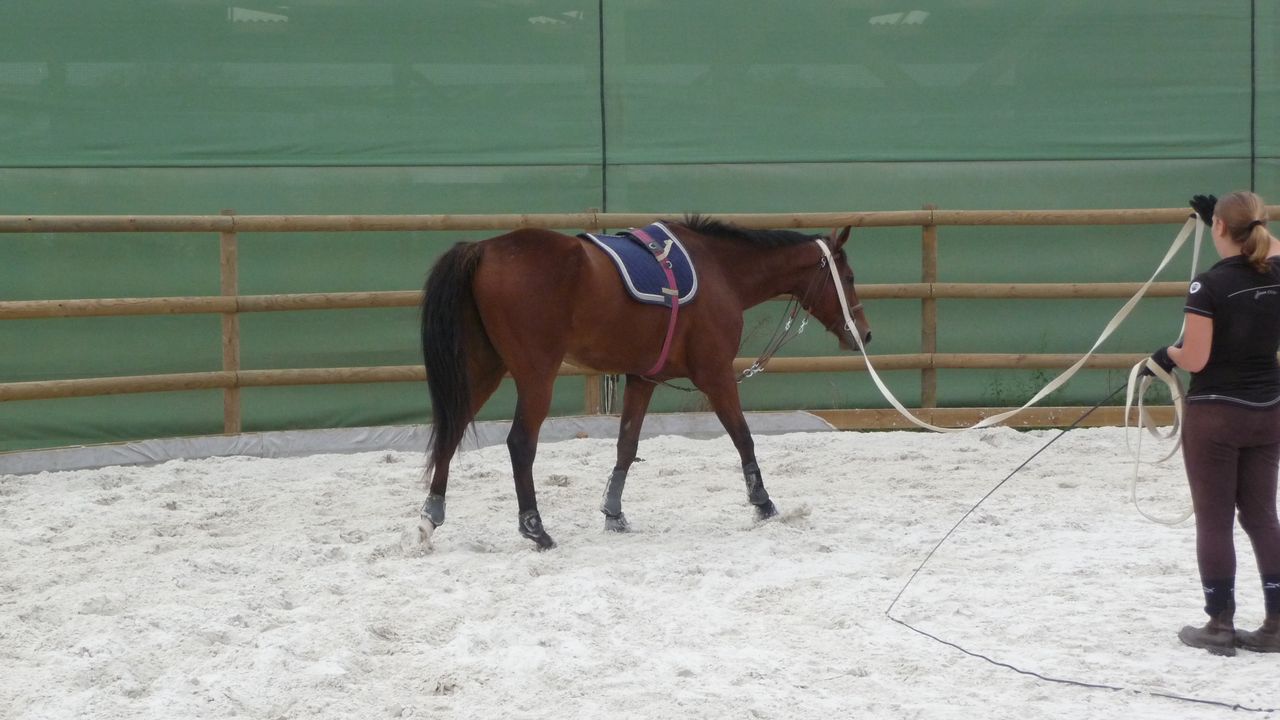 | Dire merci | pas facile de bosser avce la chaleur :moi aussi au trot il a plus de mal pour l'extention, avec le mono on bosse beaucoup les flexions et les cercles ça aide |