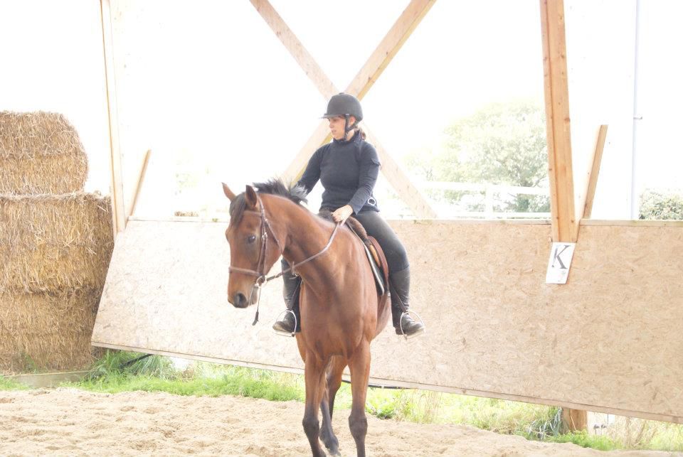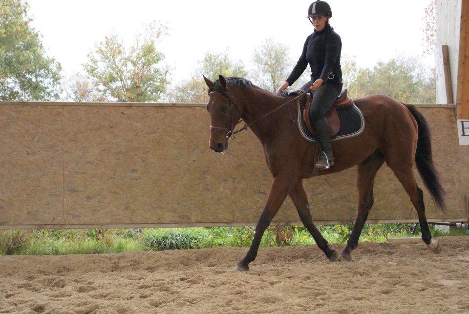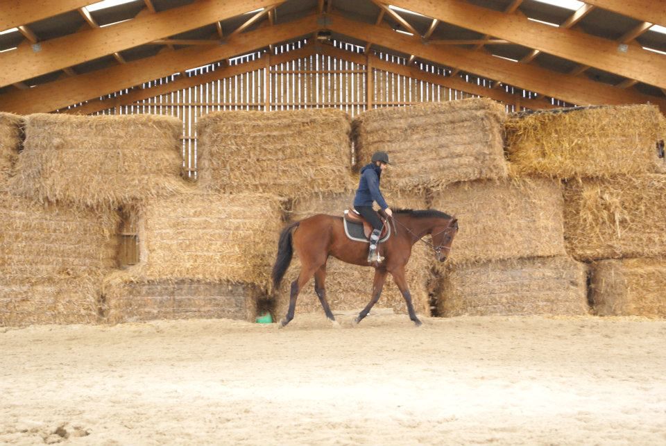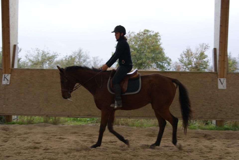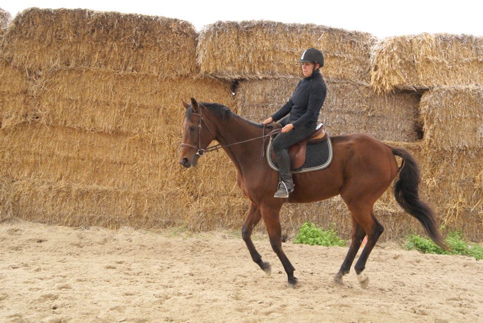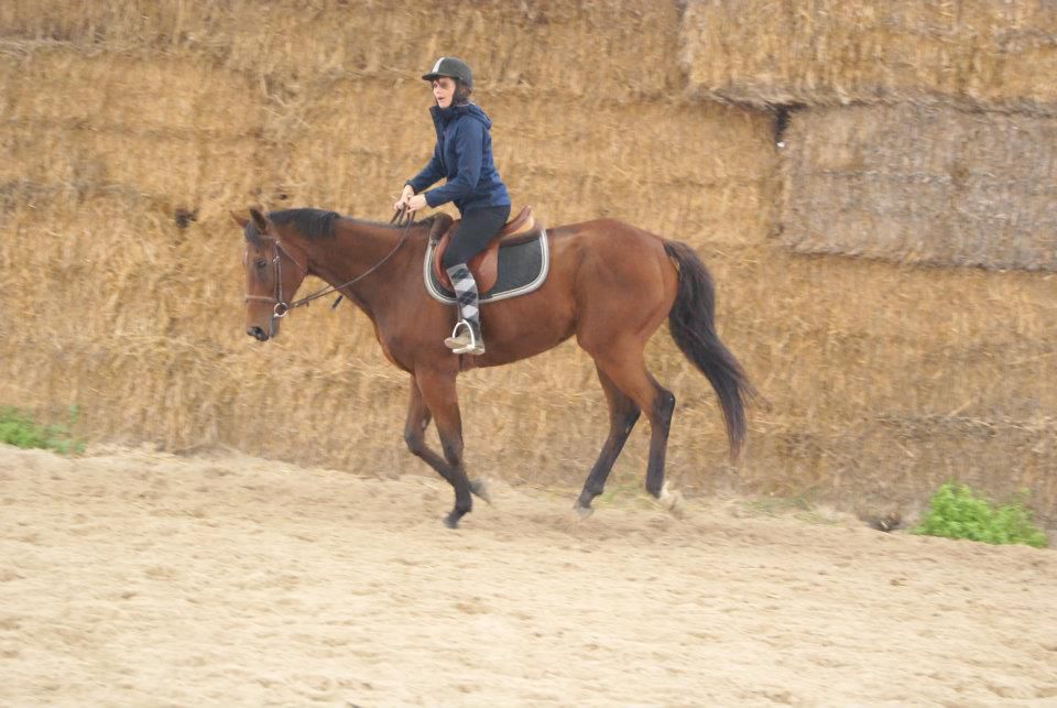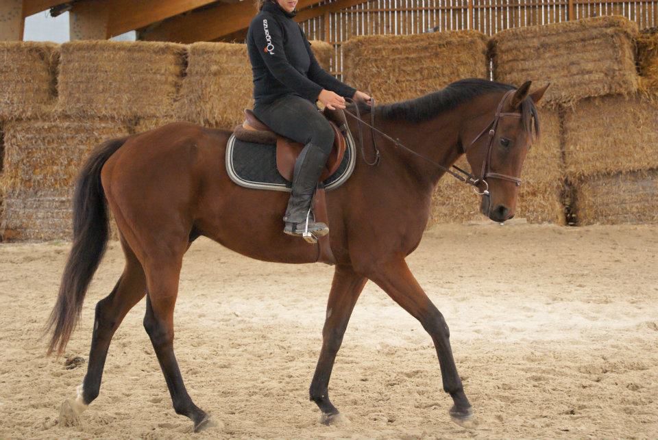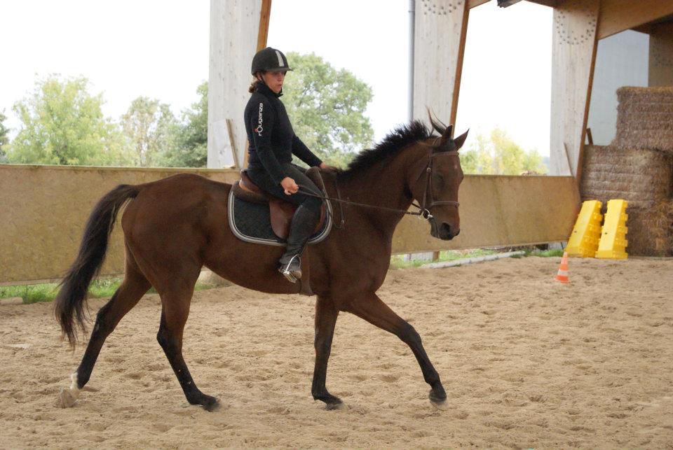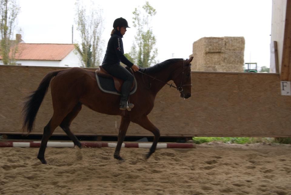 Déconnecté | J’ai trouvé que les deux avaient fait de bon progrès. Lasco est plus souple et plus décontracté qu’avant. Il est extremement léger et décontracté devant c’est un régal ! Vanou le connait mieux, ressent plus de chose et est plus « active » à cheval. Pour moi ca manque encore de « fermeté » de la part de vanou dans les demandes et parfois d’impulsion. Elle a encore les mains qui bougent trop pour que Lasco se fixe bien et surtout elle est encore trop contractée (l’éternel problème de toutes je crois pfff c’est dur ! ) Sur les déplacements, Lasco est en train de comprendre. Il se défend beaucoup mais à force de répéter et de demander il va finir par avoir le déclic ! A mon tour maintenant de critiquer mes photos lol. J’avais pas mes chaps donc déjà j’avais la jambe qui bougeait beaucoup…j’étais perdue et j’ai perdu l’impulsion..j’ai fais des départs au galop pourri ! Par contre, au galop, il était trop confortable, en équilibre, léger..bref de bons ressentis ! Comme vanou, je tire avec ma main intérieure bref…y a encore du boulot ! J’ai trouvé que vanou s’était bien mieux débrouillé que moi, comme quoi, elle commence à bien le connaitre son bouffeur de carotte mdr ! |