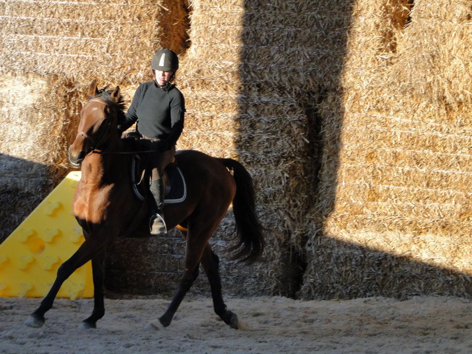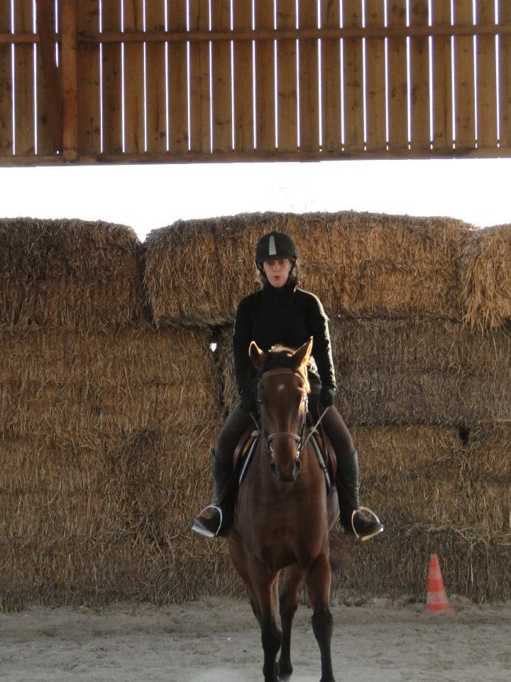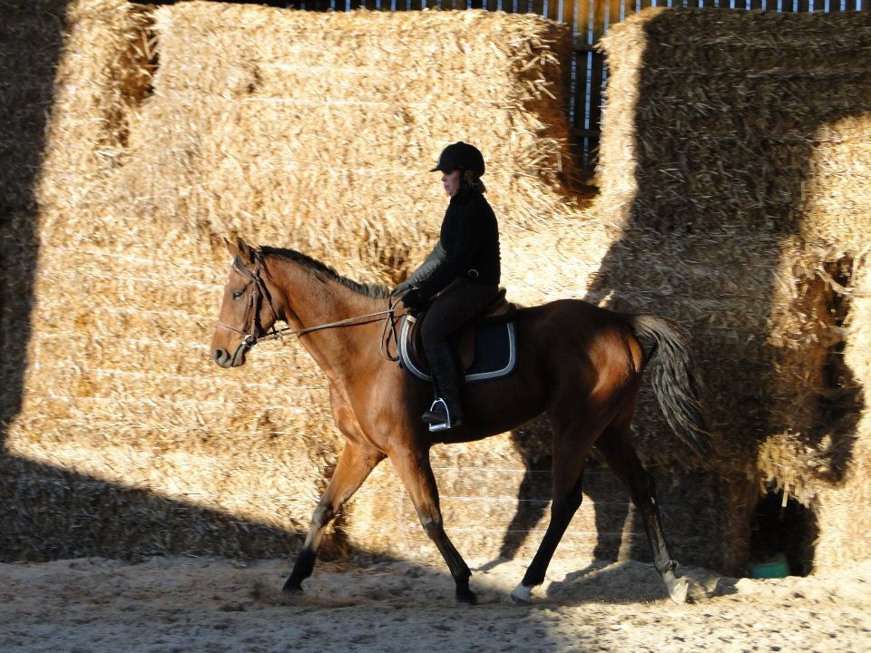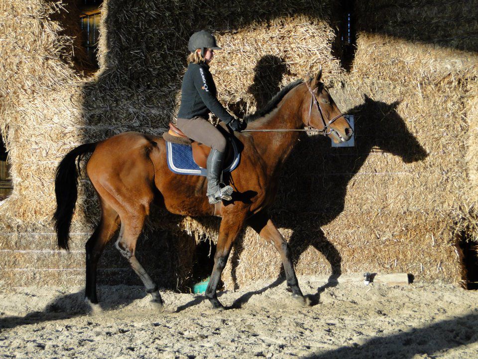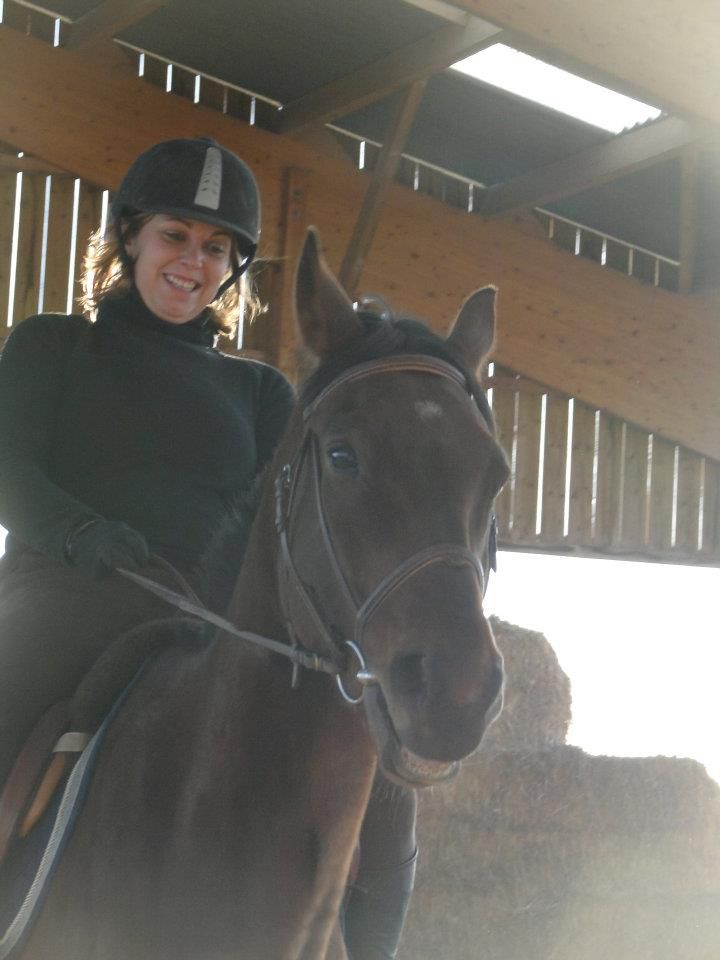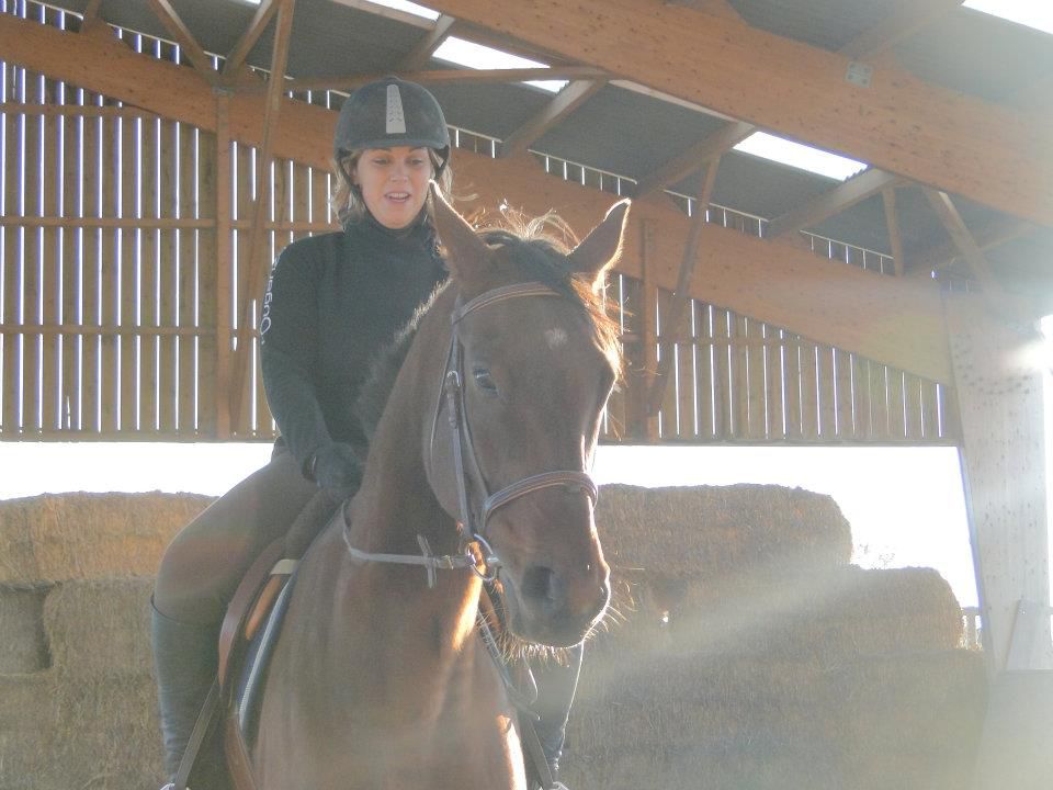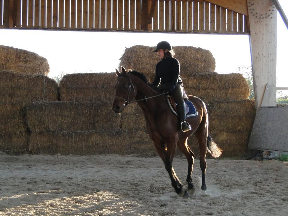 | Dire merci | Euh... déchirer, je suis pas sur Jess! Cours particulier hier soir! Enfin!!! J'avais trop hâte! J'ai été plus intelligente que la veille en longeant Lasco 5 minutes avant de grimper dessus. Il était encore trempé. Et quand je passeais la brosse, il était ultra sensible. Donc 5 minutes à trotter à chaque main et le dos nickel. Je monte. Détente tranquille, pas, trop, galop. Ma prof me corrige dans ma position. Elle m'a souvent reprise sur mes mains, trop basses ou alors qui tiraillent, mes jambes pas assez détendues... Lasco est pas trop mal. Un peu la flème, mais il se réveille vite. On commence par dérouler la reprise pour voir ce qu'il faut travailler en priorité. J'étais plus contente. Je crois que c'étais la meilleure que j'ai faite (ça va vous faire peur quand je mettrais la vidéo )Et ma prof est d'accord avec moi. Soucis dans la transition galop-trot qui dégrade complètement le travail derrière. Parce que le change d'allure plus dans les mains que dans le dos et les jambes. On ne se refait pas!Autre soucis, les coins et tout ce qui concerne la précision du tracé, c'est à dire que oui, j'utilise ma jambe intérieur, mais sans le poid du corps, Lasco ne comprend pas qu'il doit aller complètement dans le coin. Et aussi, j'anticipe beaucoup trop. Je n'ai pas terminé une figure que je suis déjà en train de penser à la suivante... La suite de la séance, on a retravaillé des bout de la reprise, et j'ai fini par avoir des choses pas trop mal (parce que je me suis mise à utiliser plus mon dos que mes mains...) Vidéo de vendredi dernier. J'ai eu à moitié peur en la visionnant... Il y avait du boulot: les coins pas fait, quasi pas d'incurvation, et ça tire, ça tire! Et moi, pas assise. Celle d'hier. Je ne m'occupe pas de l'attitude de Lasco. Bien d'autre chose à travailler. J'ai raté les 2 arrêts, je rebosse ça se soir. Les mains sont un peu plus soutenues (sauf quand je les oulbie) et je me trouve un peu plus assise. Il faudrait que je ralonge encore mes étriers, mais après, je les perds sans arrêt. Ils resteront comme ça pour le moment. Les coins sont quasi tous fait je crois et les autres transitions ok. Heureusement que j'ai encore un peu de temps pour bosser. J'aurai eu des cours sans intéruption depuis le début de l'année, j'aurai tenté de le présenter sans le gogue. Mais là, avec à peine 10 jours, je pense que je vais lui mettre. Ca me fera un truc en moins à penser. Je teste ça ce soir. |