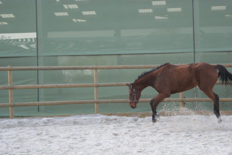 | Dire merci | Des nouvelles! Peut être une fausse alerte jeudi parce qu'hier, pied pas chaud, rien de rien. Le maréchal ne passe que ce matin et là, j'attends des nouvelles. Quoi qu'il en soit, hier, je savais pas quoi faire quand j'ai vu qu'il n'y avait plus de chaleur. J'ai trituré le pied dans tous les sens, rien. Ma prof me dit d'aller le longer 15 minuts pour voir. Il était franchement bien. A la fin, je lui ai fait passer quelques barres au sol installée dans le manège histoire qu'il prenne de gros appuie sur ses pieds. Retour aux écuries, nouveau triturage de pied, rien. Du coup, je selle, direction la carrière. Pas, trot, galop, il me parait carré. Ma prof me rejoind 10 minutes plus tard, elle le trouve bien aussi! ![]() Bon, c'est qu'il n'y a rien alors! ![]() Ensuite, vu que j'étais en selle, elle a regardé 2-3 trucs qui me chifonne en ce moment: sa contraction à gauche, le fait qu'il se durcisse dans la bouche. Après quelques petits exos, elle me dit que mon ressenti est bon, mais pas de soucis locomoteur particulier. La contraction est là, mais plus par manque de travail et de souplesse. Donc si le maréchal ne trouve rien, reprise du travail avec un max d'assouplissement! Sinon, des photos de samedi derniers que jument_Noire a pris quand elle est venue! ![]() ![]() Une photo au carré pour juger de son état... encore et toujours trop fin... Et encore, merci au poil d'hiver! ![]() Lachage dans le rond de longe de la bête (il ne boitait plus samedi) ![]() ![]() Cheval volant! Dommage que jument_Noire n'est pas réussi à prendre les coup de cul de fou qu'il envoyait! ![]() ![]() ![]() ![]() (licol du club, pas très joli et beaucoup trop petit, j'avais zappé le mien)![]() Technique pour le bain de pied! ![]() Et le truc immonde autour de mes jambes, c'était pour protéger mon jean de la javelle! ![]() ![]() |
