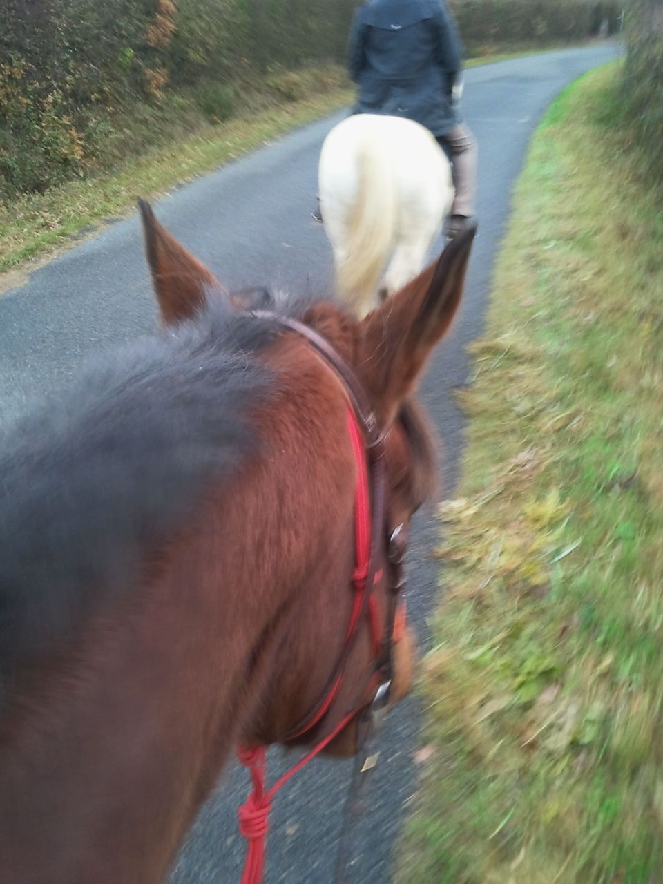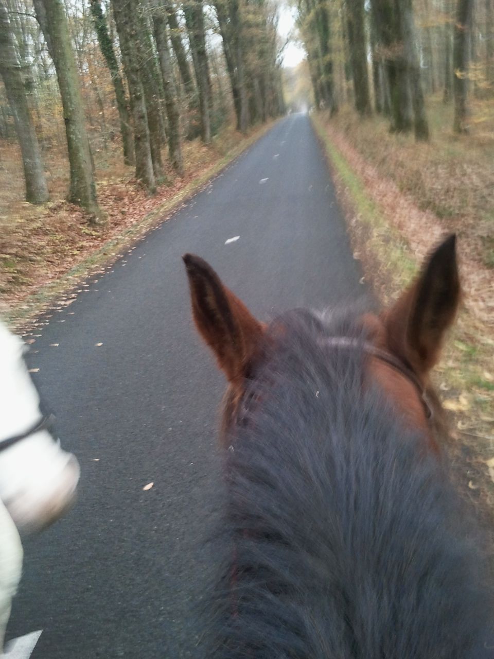 | Dire merci | *** suite *** On a croisé beaucoup de monde, ramasseur de champignons, promeneurs, chasseurs, des chiens en tout genre, beaucoup de vaches, des ânes et aucuns problèmes. Fidèle à lui même, Lasco se base sur la jument qui nous accompagne. En début de balade, impossible de passer devant. Mais sur la dernière demi heure, je ne sais pas si c'est qu'il savait qu'on approchait de la maison où s'il prenait confiance en lui, mais il est passé devant comme un grand, oreilles pointées, se retournant de temps en temps pour vérifier que la copine était là. Quand ça faisait trop peur, il s'arrêtait. Une fois détendu, je lui demandais d'avancer. Ok, mais au ralentit... histoire que la copine arrive avant nous et qu'elle passe devant. En gros, super fière de lui! En quasi 1 an sans balade, il s'est comporté de façon exemplaire! Et moi, je me suis vraiment faite plaisir! Plus qu el'étape du galop! A refaire en décembre! ![]() Les photos prisent avec le portable. Je suis déçu, je pensais pas qu'elles seraient aussi flou et aussi moche! De la route ![]() Et encore de la route ![]() Arrivée enfin en forêt ![]() C'est vraiment joli en automne! ![]() ![]() Et de nouveau de la route pour rentrer! Oreilles pointés genre "oh chouette, pleins de monde!" ![]() |