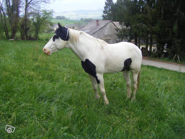 | Dire merci | Bon je reviens sur ce post!!! Après de nombreux retournements de situations, Quenya va finalement bien être saillie cette année. Pour faire court, Quenya, 7ans, est désormais une jeune retraitée... Je cherchais donc une nouvelle pension pour elle. Et elle va aller chez un de mes clients (agriculteur) qui a 4 chevaux dont un entier. Il va me la prendre gratuitement en pension puisqu'il va la mettre avec son entier et le poulain sera pour lui! Voici donc le futur papa! Un paint PP (il fait tout tordu sur la photo, j'en referai des mieux quand elle sera avec...) ![]() Message édité le 31/05/11 à 11:30 |
