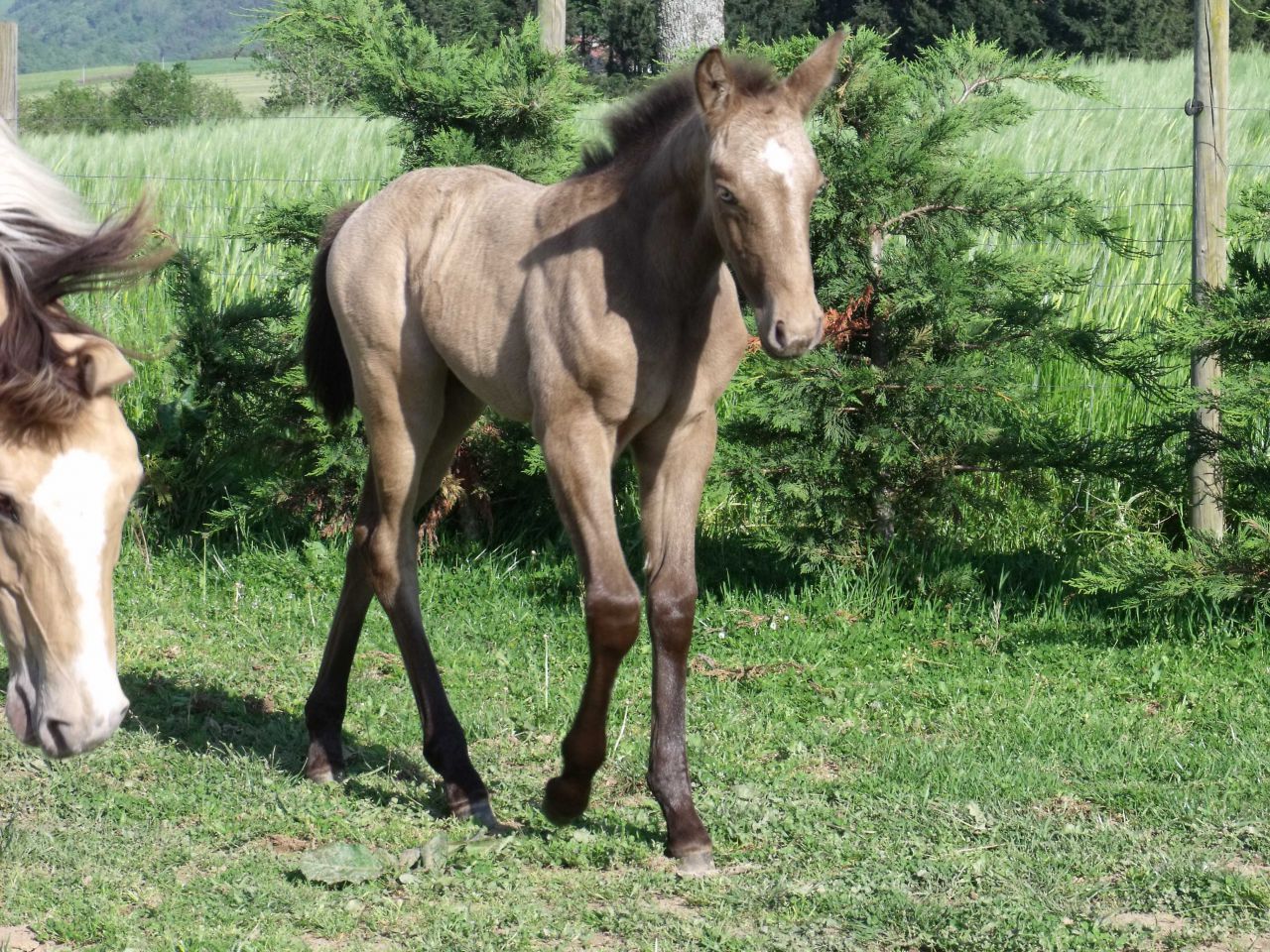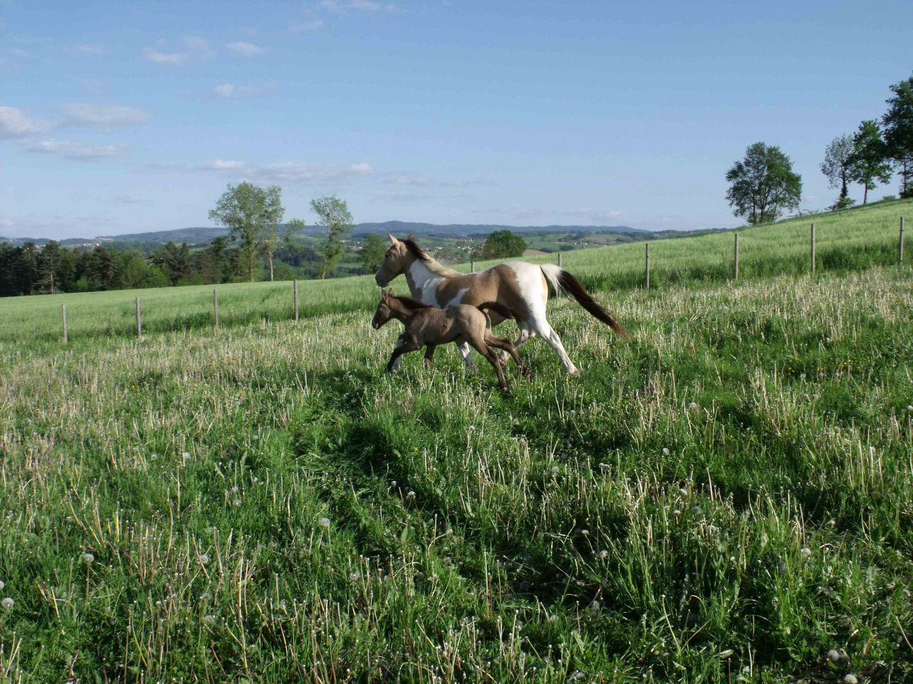 | Dire merci | Quelques photos de ma poulichette qui sont de vendredi, elle prenait donc une semaine Ca galope dans le pré devant maman qui se traine : ![]() Telle mère, telle fille ... ![]() En mode curieuse mais tout de même à l'abri derrière maman : ![]() Quelques tentatives pour manger mais sans grand succès ![]() J'en suis gaga |