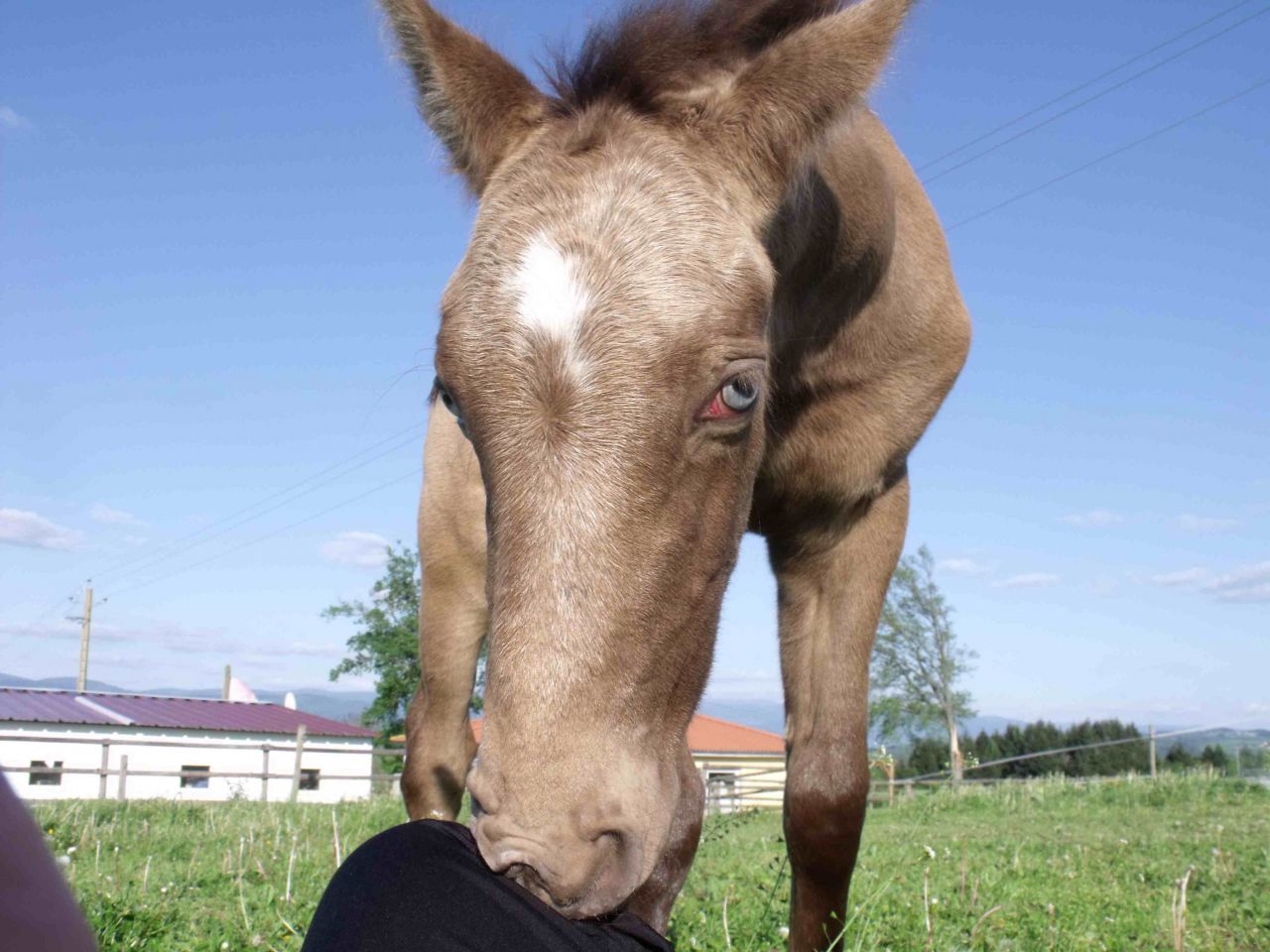 | Dire merci | Moi je suis bien contente,maman commence a comprendre que je ne suis pas une mangeuse de poulains... La petite est très curieuse, je suis toujours dans la phase ou j'essaye de l'a caresser de partout, je prends mon temps mais peu importe... Semaine prochaine je fais une tentative de mise du licol et j'essayerais de prendre les pieds selon ses réactions... Elle a une petite dent qui pousse, c'est trop mignon ! J'ai fais des photos,je les mettrais demain soir... |