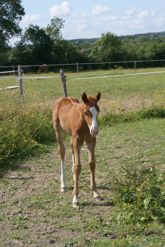 | Dire merci | Le papa c'est Kaolin d'Elle. La mère repart à la sailli cette année, mais j'ai zappé de demander avec quel étalon (c'est la jument de la gérente de ma pension, mais comme c'est le 1er de la pension, on en est tous fou et tout le monde attendait et surveillaient cette 1ère naissance). Oui, il s'est bien arrondit. |