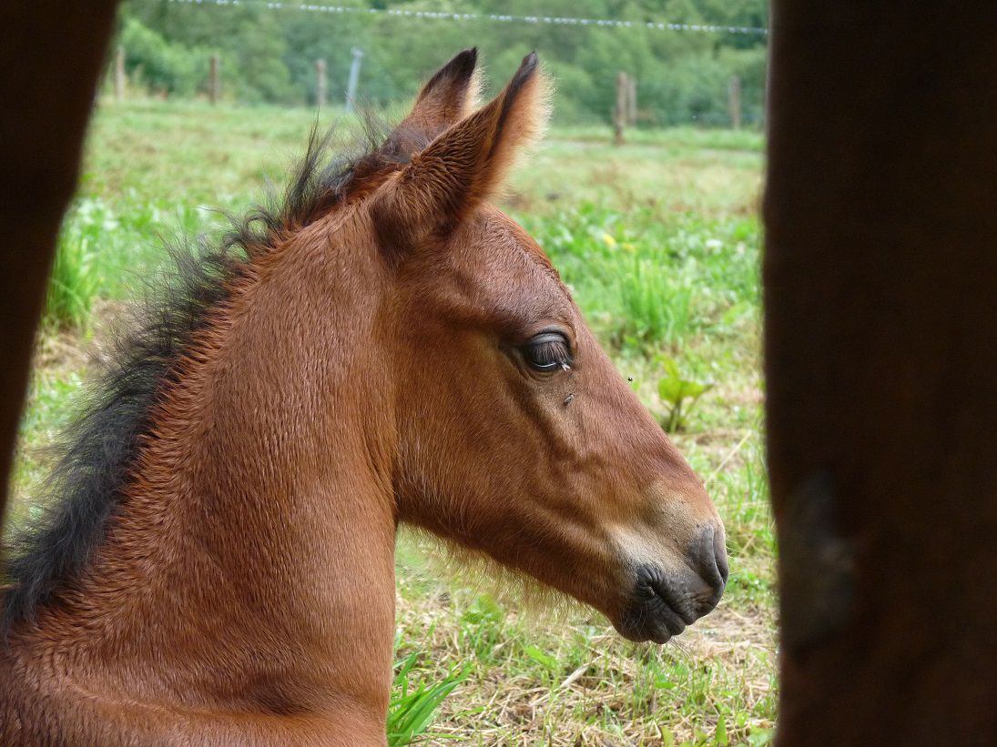| Dire merci | Cuzco, 1 mois, il a une bonne arrière main maintenant, il doit faire 1m au niveau de la croupe. [img]http://lh5.googleusercontent.com/-ExSlMLbngxY/T_d952TpS2I/AAAAAAAACIk/MTsTcM-6QI4/s535/DSC_014723.jpg" alt="" /> il accepte le licol, le pansage, prochaine étape tripoter ses pieds c'est une géante ta pouliche honest |