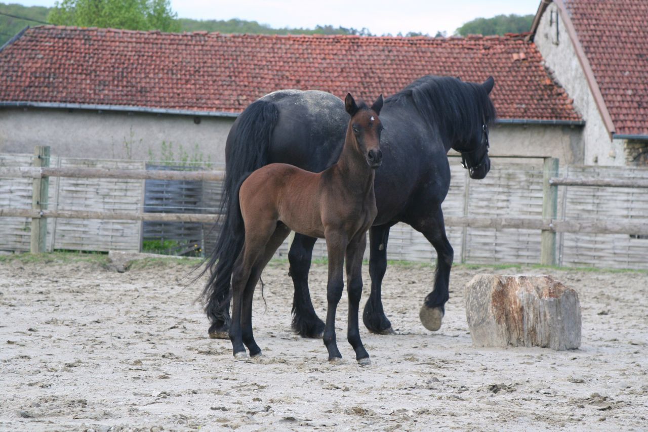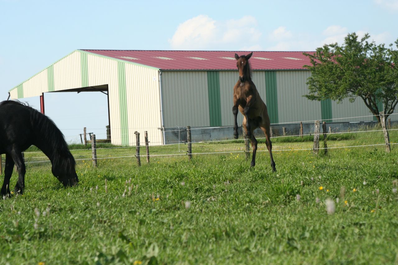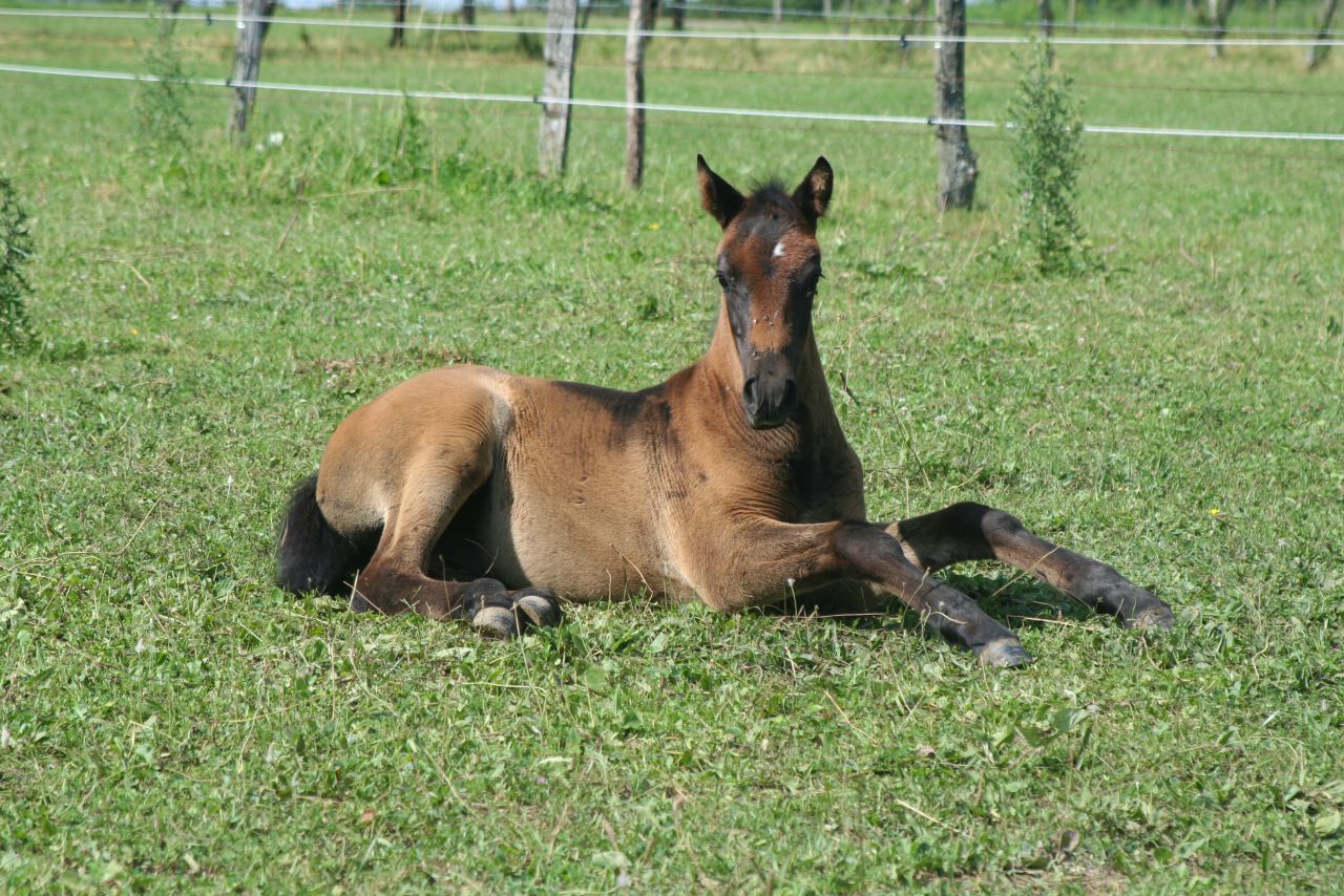 | Dire merci | Bonjour tout le monde, Je m'incruste un peu sur ce post étant comme vous une proprietaire d'un merveilleux poulinou 2012 et aussi parce que j'ai une ptite question pour les pros des robes Mon poulain arabe x merens est né bai foncé et là il commence à virer au noir sauf qu'il a des poils blanc ds son noir du coup j'ai un peu peur qu'au final ca soit un gris Vous en pensez quoi? Je précise le papa est un arabe gris!Voici qqs photos pour illustrer A la naissance ![]() A une semaine ![]() A un mois ![]() ![]() A 2mois ![]() ![]() Et à 3 mois en mode je ressemble à rien mais j'ai une bonne bouille ![]() ![]() Le cul avec des poils blanc ![]() ![]() Une ptite dernière ![]() Désolé pour le nombre de photos mais je suis la première fan de mon poulinou ![]() |