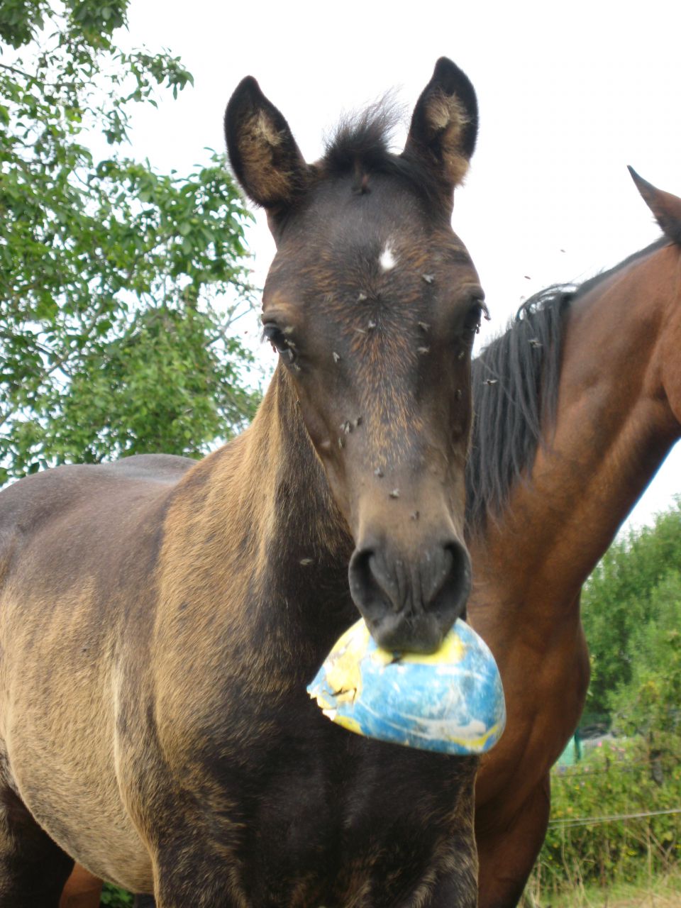 | Dire merci | Elle sera bien plus typée quand elle aura perdue son infâme poil de poulain mais elle a pas l'air pressée de s'en débarrasser la bougre ![]() J'ai tellement hâte qu'elle soit bien noire ! |