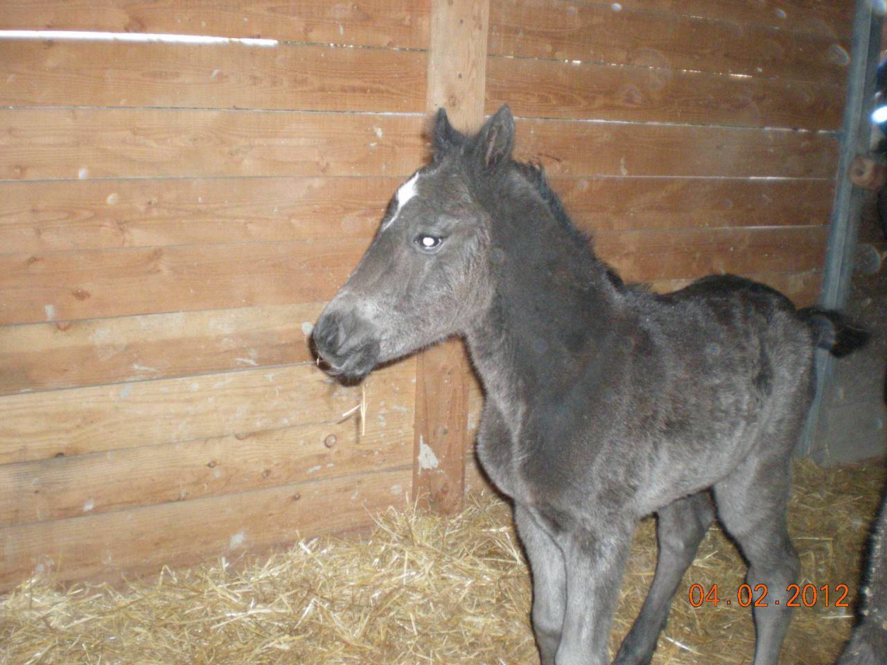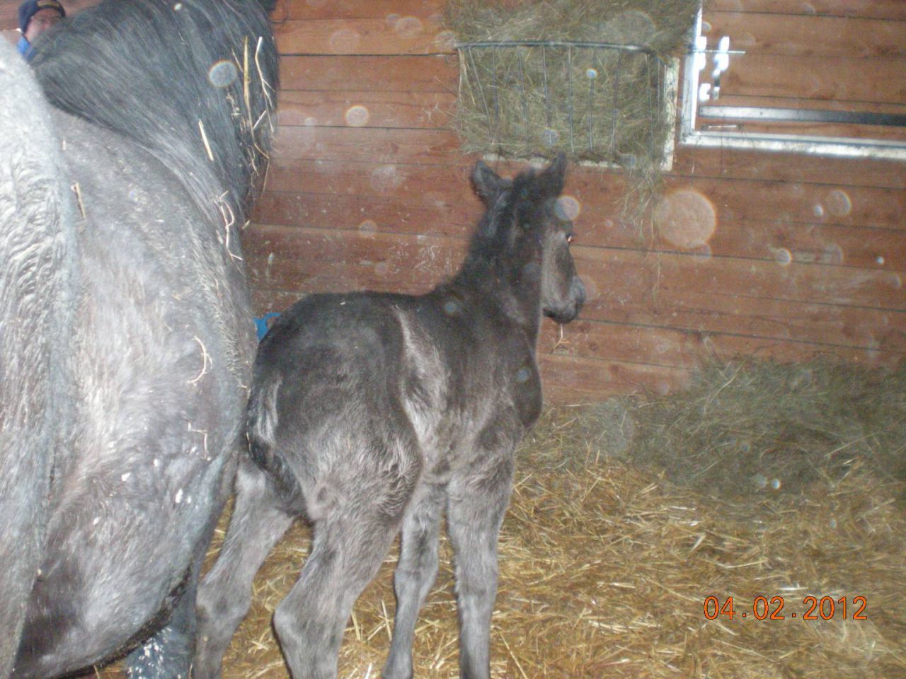 | Dire merci | Je n'ai pas suivi le post des futures mamans, au plutôt je l'ai suivi sans y participer vu que ce n'est pas ma jument qui allait pouliner... Ma voilà maintenant qu'il est là je vous présente CHEROKEE né en début d'après midi pendant que tout le monde avait le dos tourné Tout c'est super bien passé, quand le proprio est arrivé il était debout, avait tété et tout ça.. On le garde couvert quelques jours car -12 dehors et le frais se faufile un peu dans les écuries.... J'avoue que j'ai hâte de voir comment va évoluer sa robe... |