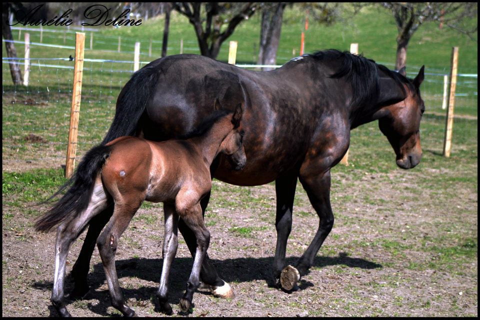 | Dire merci | Ca sent le poulain par ici !! ils vont tous débarquer en même temps Plus qu'un mois pour ma pépette, je fais des photos demain, elle est énorme mais pas de signes apparents pour le reste. ![]() |