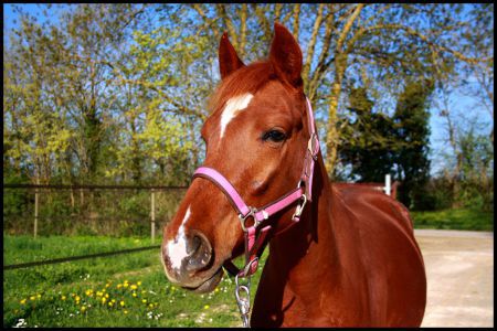 | Dire merci | Sa fais zizir de te voir là haut ![]() Le rose lui va bien a ta Lulu ! les prés sa fait envie ! |