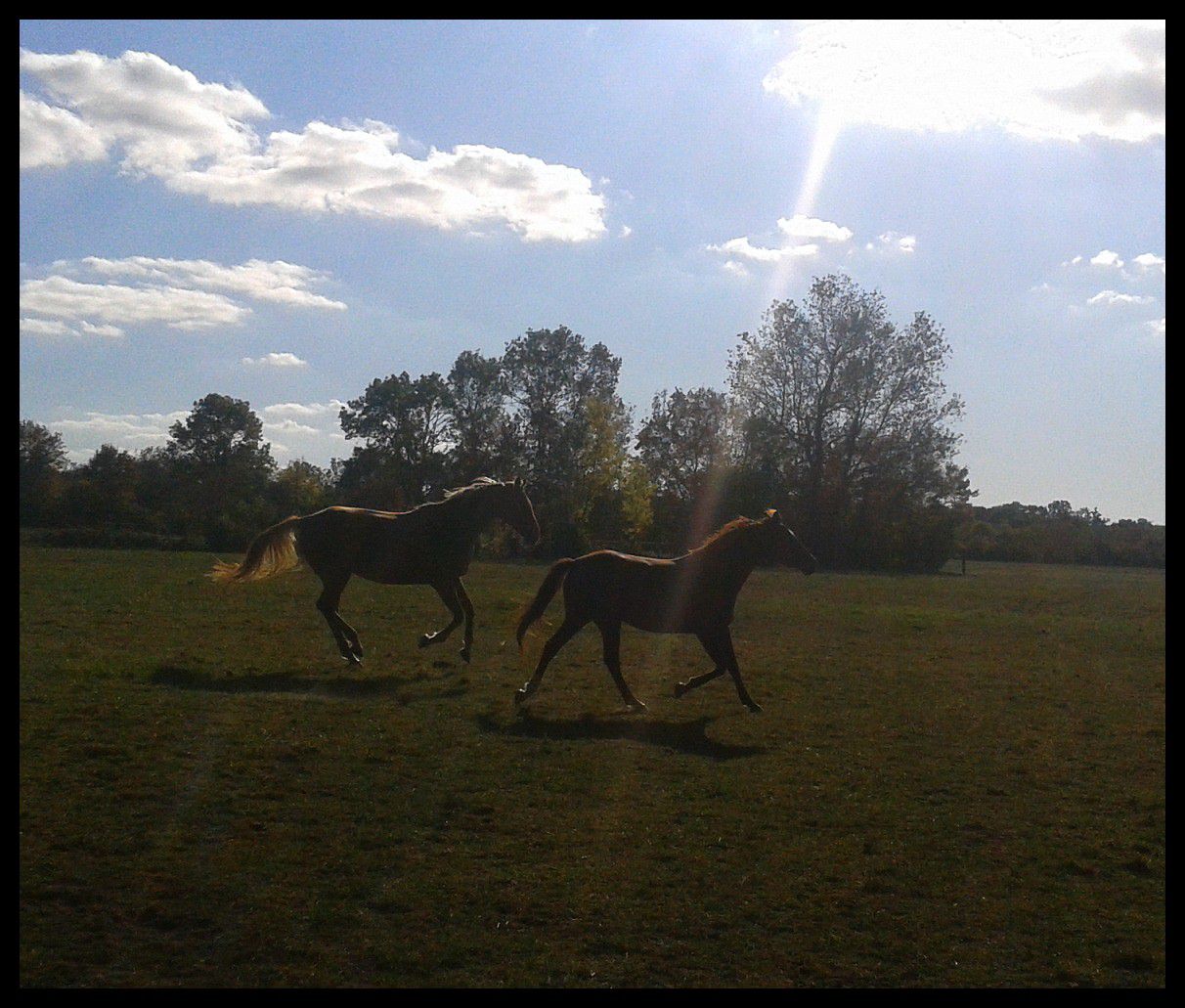 | Dire merci | un peu de nouvelle de ma lupette qui fait .... heu bin pas grand chose a vrai dire hein !! toujours au champs, elle ce la coule douce avec ces potes !! Bon je me sens moins frustré de ne pas la monter, car il n'y a plus de chevaux au écurie, ils sont tous au champ |