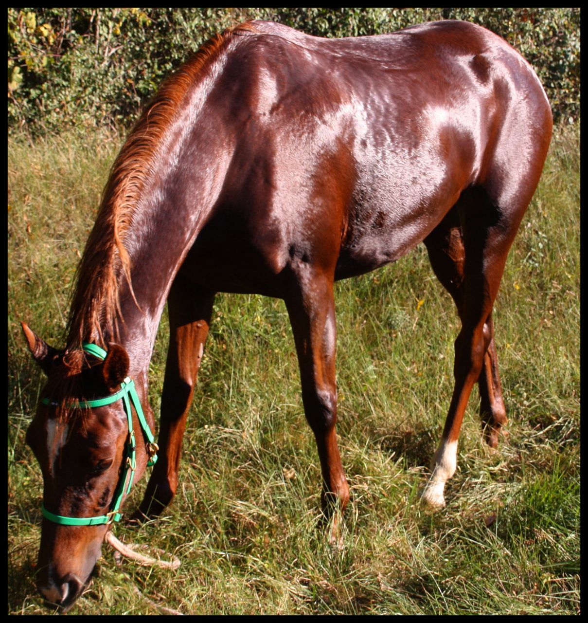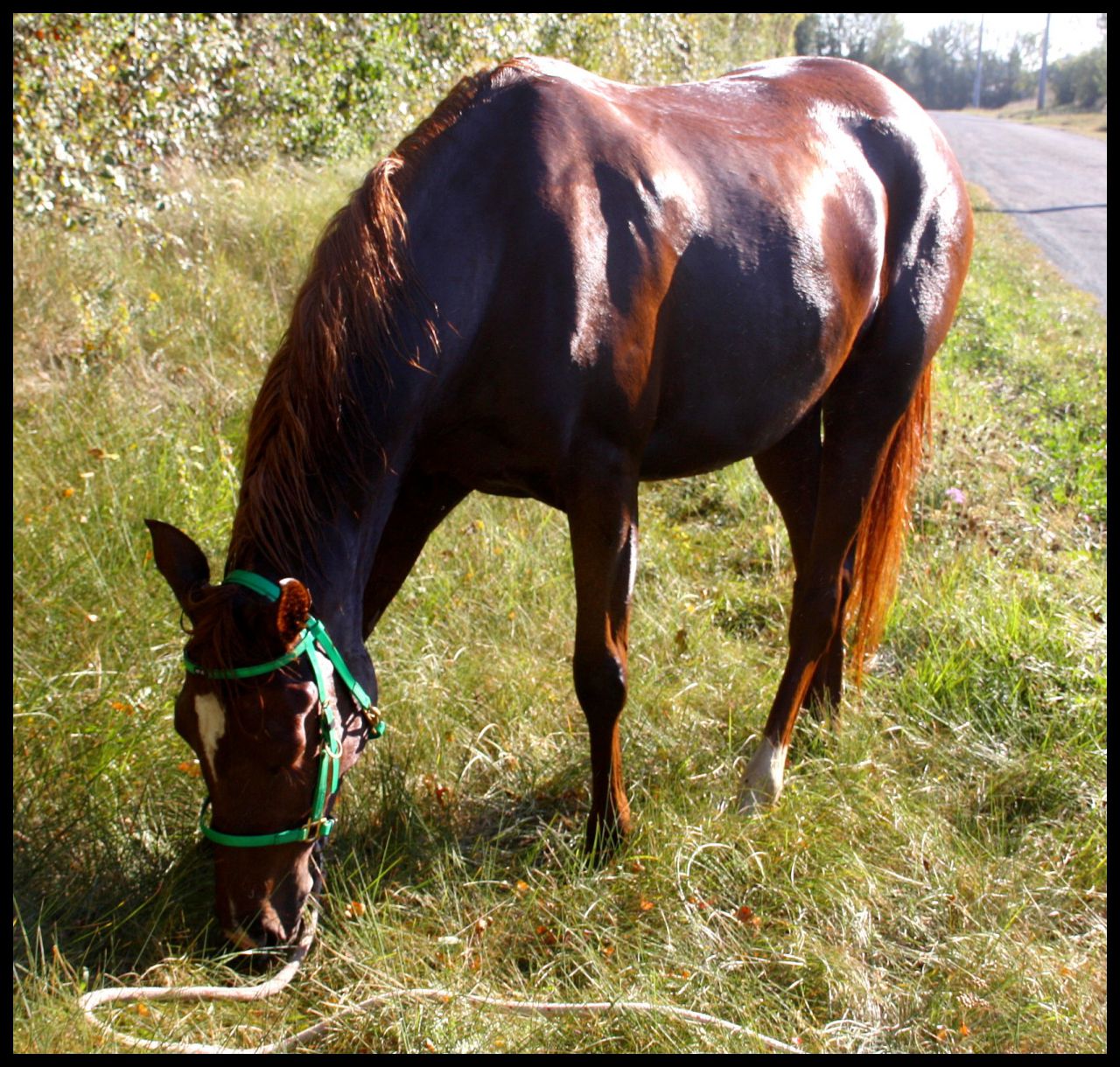 | Dire merci | pas possible, elle n'a JAMAIS côtoyer d'étalon !! sauf le poulain qui est avec elle, mais qui n'a que 5 mois |