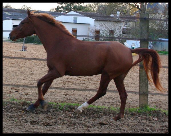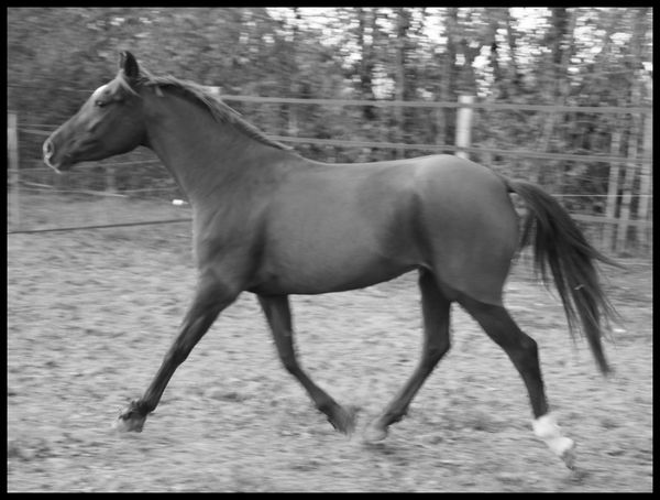 | Dire merci | Pour une 4 ans, je ne souhaite en aucun la foutre tous les week end en concours, et même les années d'après d'ailleurs !!! je veux juste voir ces réaction, voir si cela lui plait ou pas, et faire en fonction !je sais qu'elle aime la ballade, toujours les oreilles en avant, peur de rien ou presque, et une pêche d'enfer !! je sais également qu'elle aime sauter, car elle y va toujours avec envie et peut importe la couleurs de l'obstacle, ou si il y a des soubassement ou non !! Peut-être que plus tard, on fera 1 ou 2 dressage, ou même du trec, enfin bref je veux lui montrer un MAXIMUM de chose, et je sais qu'elle en est capable, car elle a un caractère en OR |