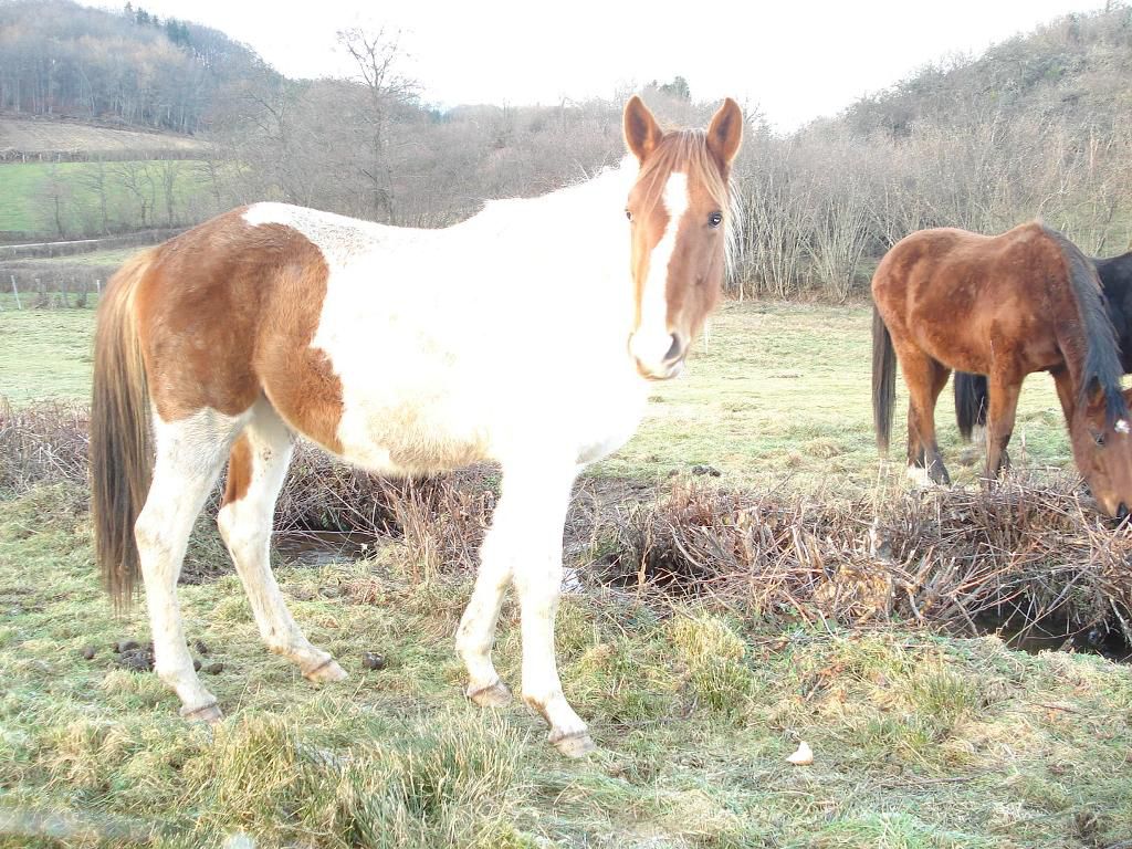 | Dire merci | Moi je veux bien avoir votre avis qu'il soit bon ou mauvais et même des conseils sur ce que je devrais travailler plus en profondeur pour équilibrer ![]() Jument 4 ans et demi: ![]() ![]() ![]() ![]() ![]() Attitude au travail avec une tête portée moins haute que sur la photo précédente, elle tend sa ligne de dos par accoups. Allures moyennement relevées, allongements les doigts dans le nez. Part naturellement à juste au galop. Défaut qu'on commence à travailler: se couche sur le cercle et galop plutôt difficile à canaliser (vitesse et pour moi les postérieurs vont pas assez sous la masse). Bon on commence juste le travaille ! |