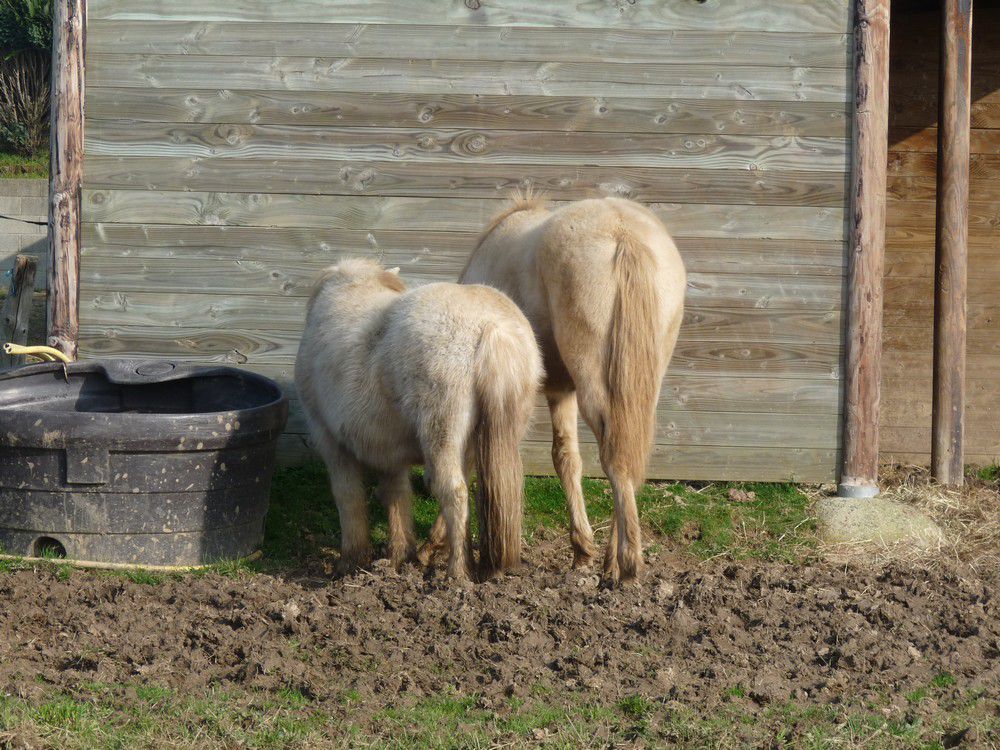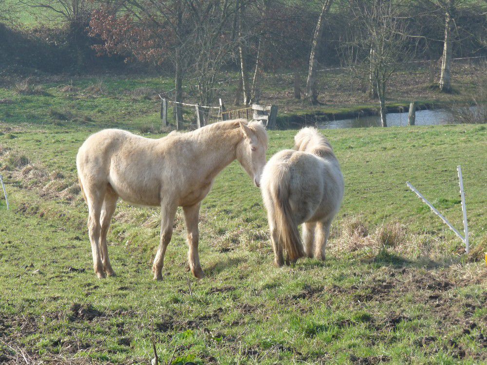 | Dire merci | comme je le dis sur la vidéo, Arriado est à bonne école ! Tout ce que fait Arriado à Vénus aujourd'hui c'est ce que faisait Vénus à Arriado non stop les premiers jours où ils ont été ensemble ! oui, Mumu, bon je n'ai pas compté les pas qu'il y a de chez moi au pré mais je dirai qu'une cinquantaine de mètres séparent ma maison du pré d'Arriado et Vénus !!!!!!! je peux les apercevoir d'une des chambres de la maison ! c'est le rêve !!!!! mais il va falloir que j'en profite, je vais devoir leur trouver un nouvel endroit pour brouter où ils vont abimer le terrain et l'herbe ne poussera pas ce printemps !!!!! ![]() Magnette, Vénus à 20 mois ! quand tu es à coté de lui, c'est dur de se dire que c'est encore un bébé ! à part quand tu les vois se chercher !!!!!! ![]() |