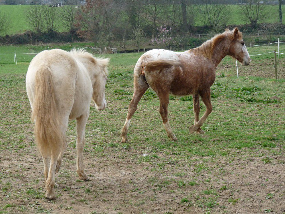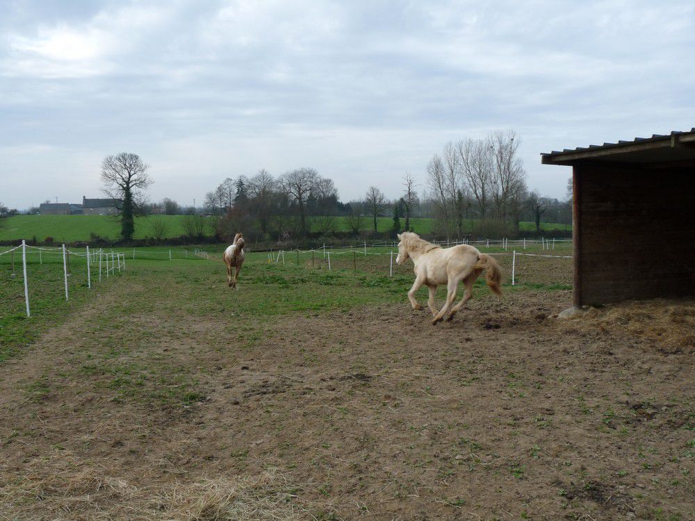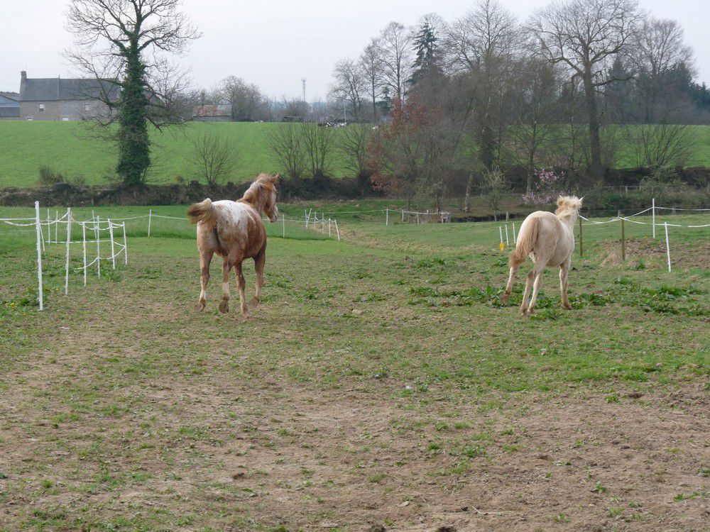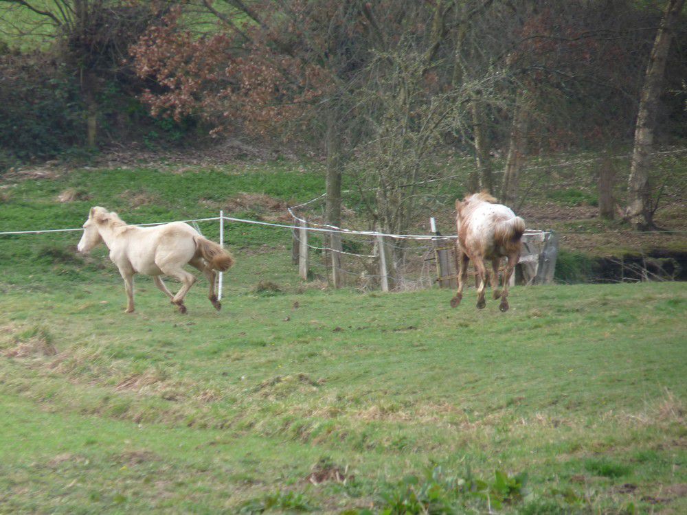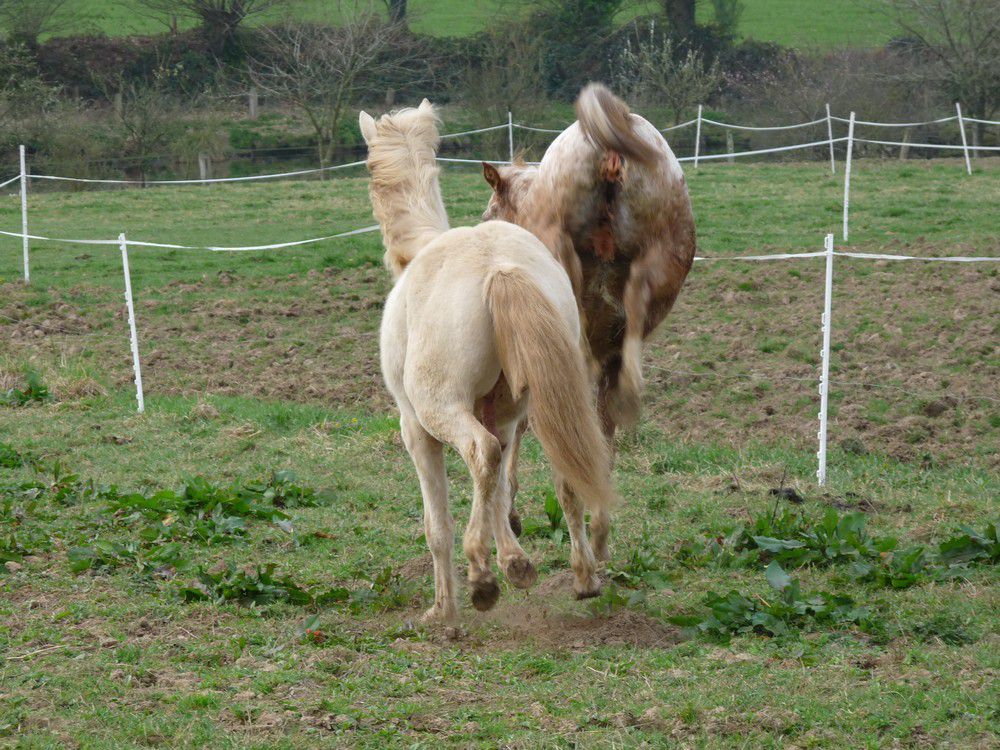 | Dire merci | quelques nouvelles de Dadou qui se porte à merveille et qui a accueilli ce matin sa nouvelle copine. Donc Arriado vous présente Asie, pinto X de 1 an et qui n'est pas du tout une pouliche facile !!!!!! ![]() les premiers bonjour semblent calment ... ![]() mais en fait, ils sont un peu sportif pour Dadou ! ![]() alors, après 2-3 coup de pied, Monsieur est quelques peu refroidit !!!!! limite il était plus stressé qu'elle !!! ![]() ![]() mais toujours très intéressé par cette damoiselle ! |