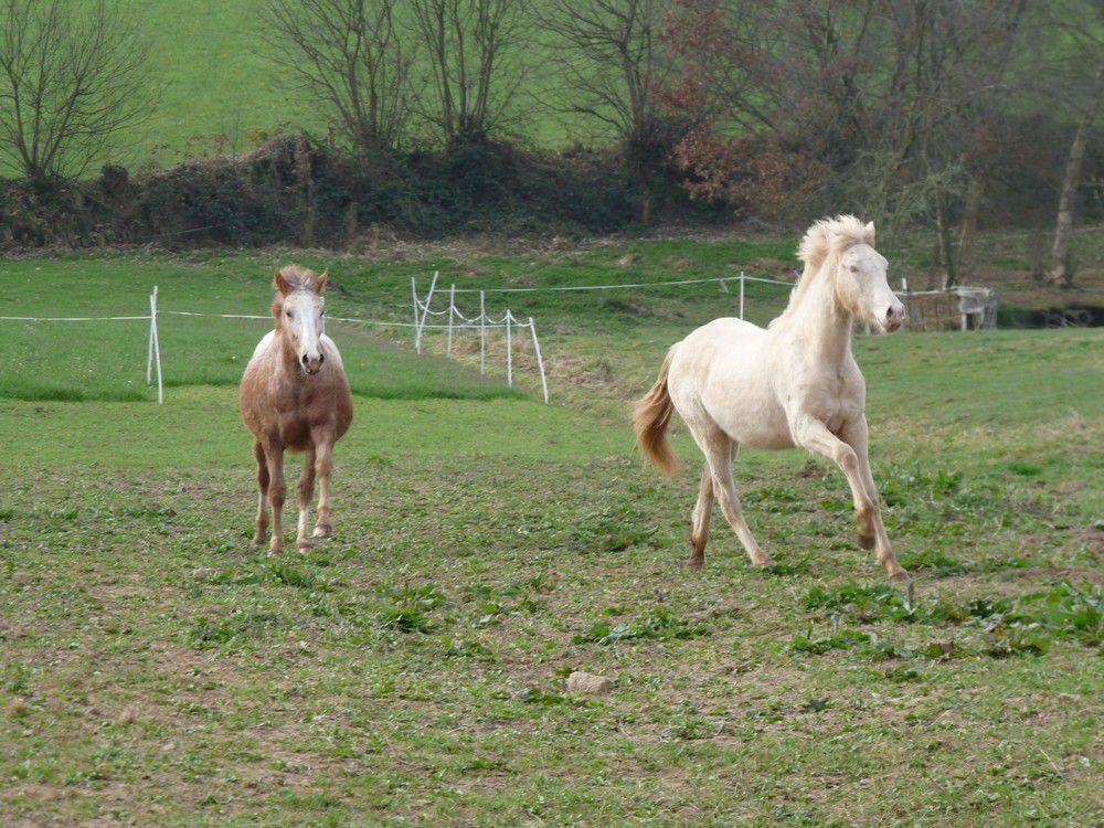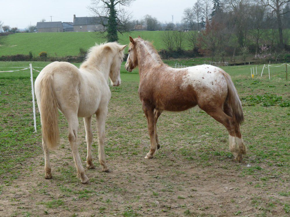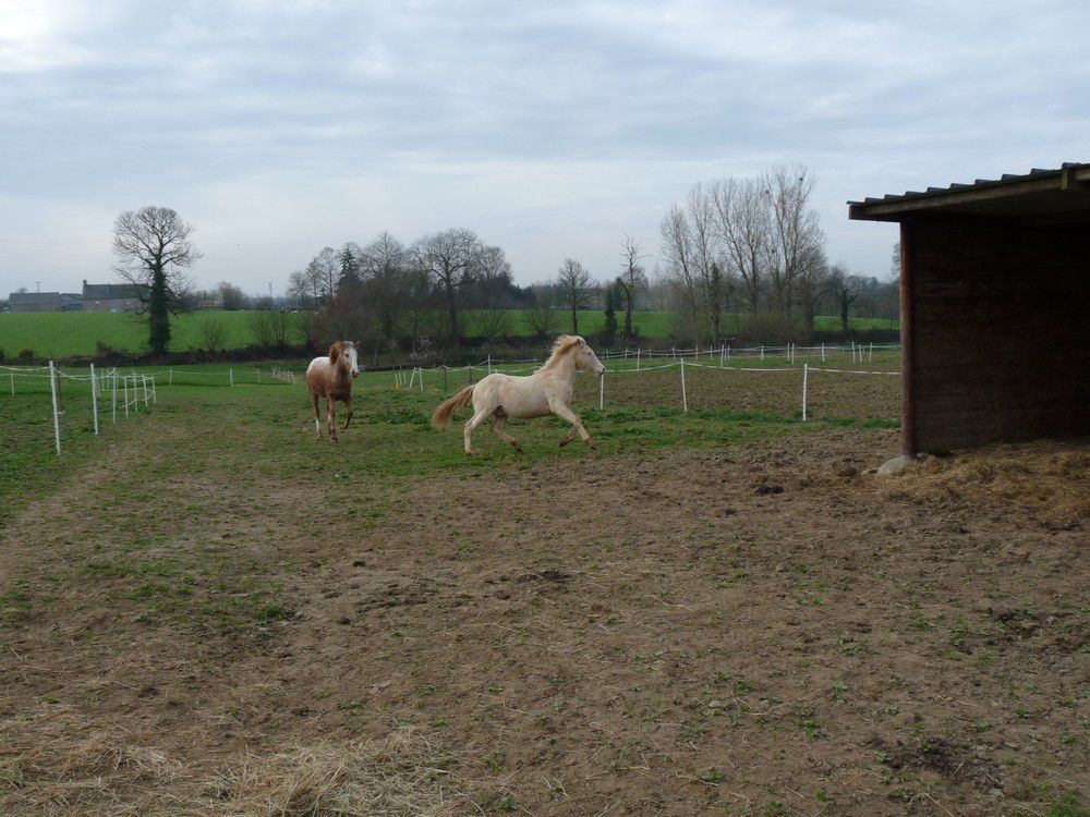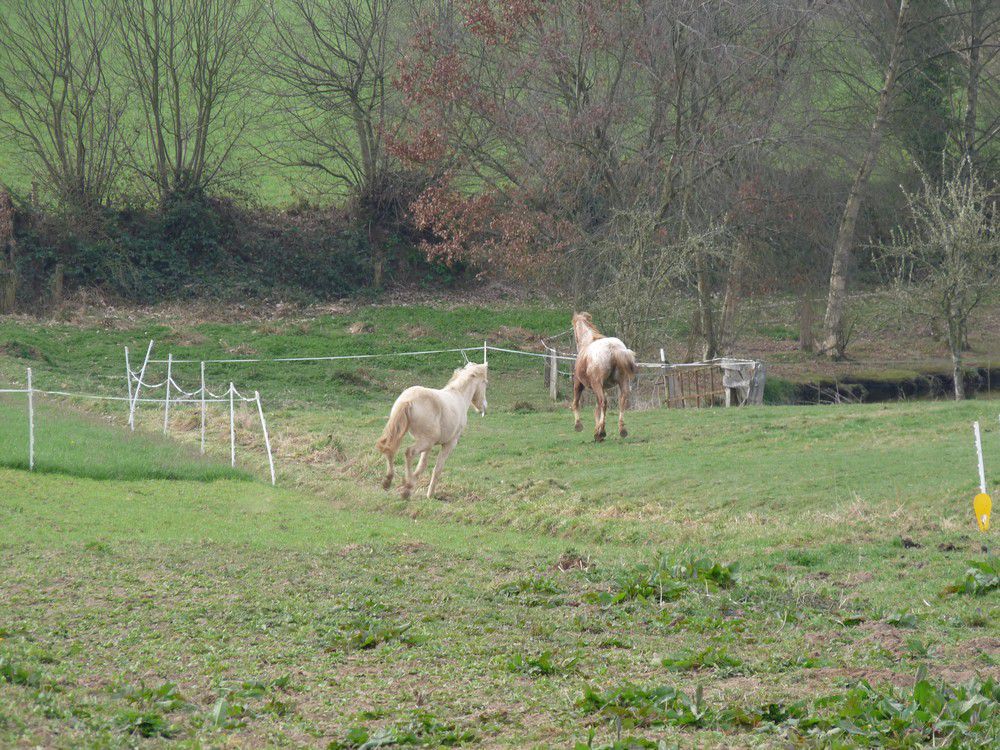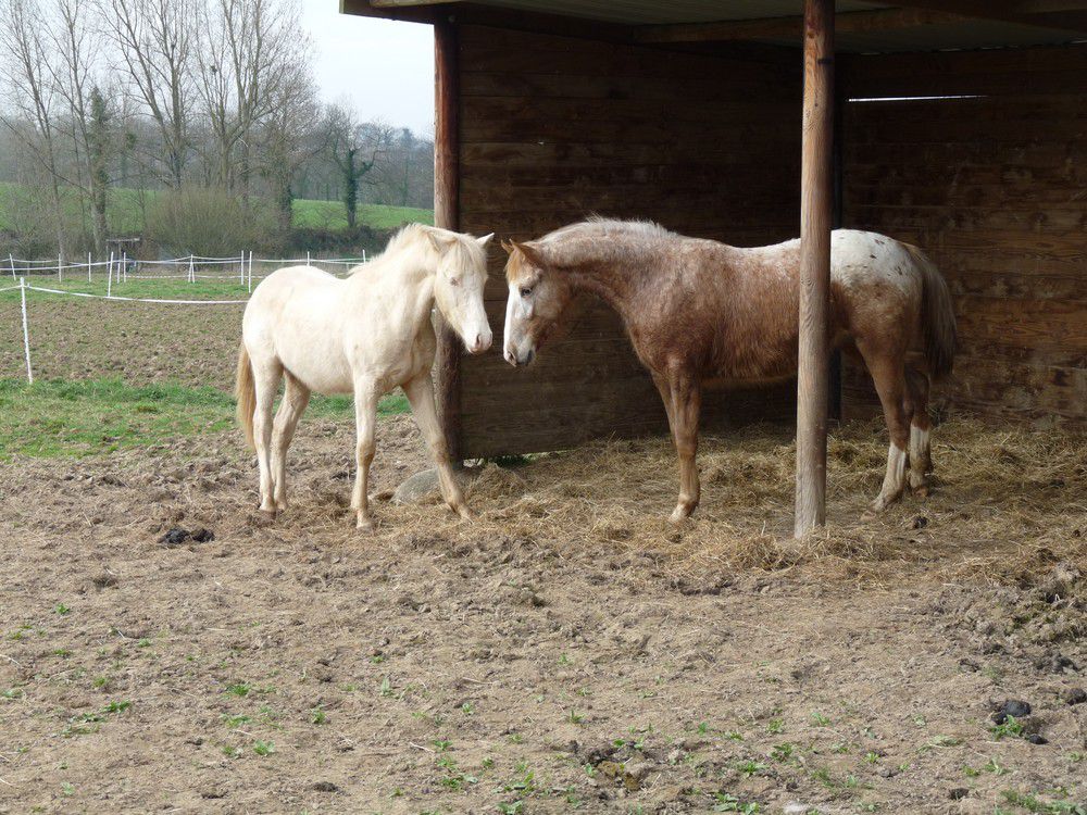 | Dire merci | quelques nouvelles de Dadou qui se porte à merveille et qui a accueilli ce matin sa nouvelle copine. Donc Arriado vous présente Asie, pinto X de 1 an et qui n'est pas du tout une pouliche facile !!!!!! ![]() les premiers bonjour semblent calment ... ![]() mais en fait, ils sont un peu sportif pour Dadou ! ![]() alors, après 2-3 coup de pied, Monsieur est quelques peu refroidit !!!!! limite il était plus stressé qu'elle !!! ![]() ![]() mais toujours très intéressé par cette damoiselle ! |