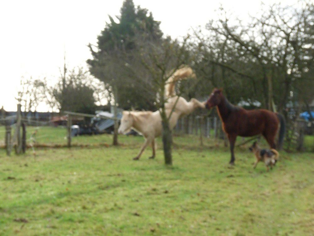 | Dire merci | moi aussi je ne peux que le trouver super beau ! c'est le fils de Liska et Daou ! ![]() je ne vois qu'un poulain bien fait dans le sens où rien ne pêche nulle part à part les quelques inégalités dues à l'âge. il s'étoffe plus qu'il ne grandit, mais chaque chose en son temps. il a un peu grandit dejà, mais je ne sais pas ce que sa taille va donner, surprise ! ![]() en ce qui concerne son caractère, AUCUN changement, c'est une perle. indépendant, malin, joueur autant que calme, curieux et espiègle ! c'est une crème ! aie aie aie, Aurélie tu radotes !!!! |