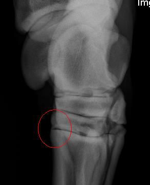 | Dire merci | ![]() Sur cette radio je vais t'expliquer en quoi consiste l'éparvin Tu vois les 2 os en forme de galette posés l'un sur l'autre? Et tu vois le bout qu'il y a à droite en perpendiculaire? ce sont les tarses et en fait le principe de l'éparvin est de souder ces os entre eux donc les jointures que tu vois là sur ta radio disparaissent! De l'os se crée par dessus et englobe le tout ![]() |